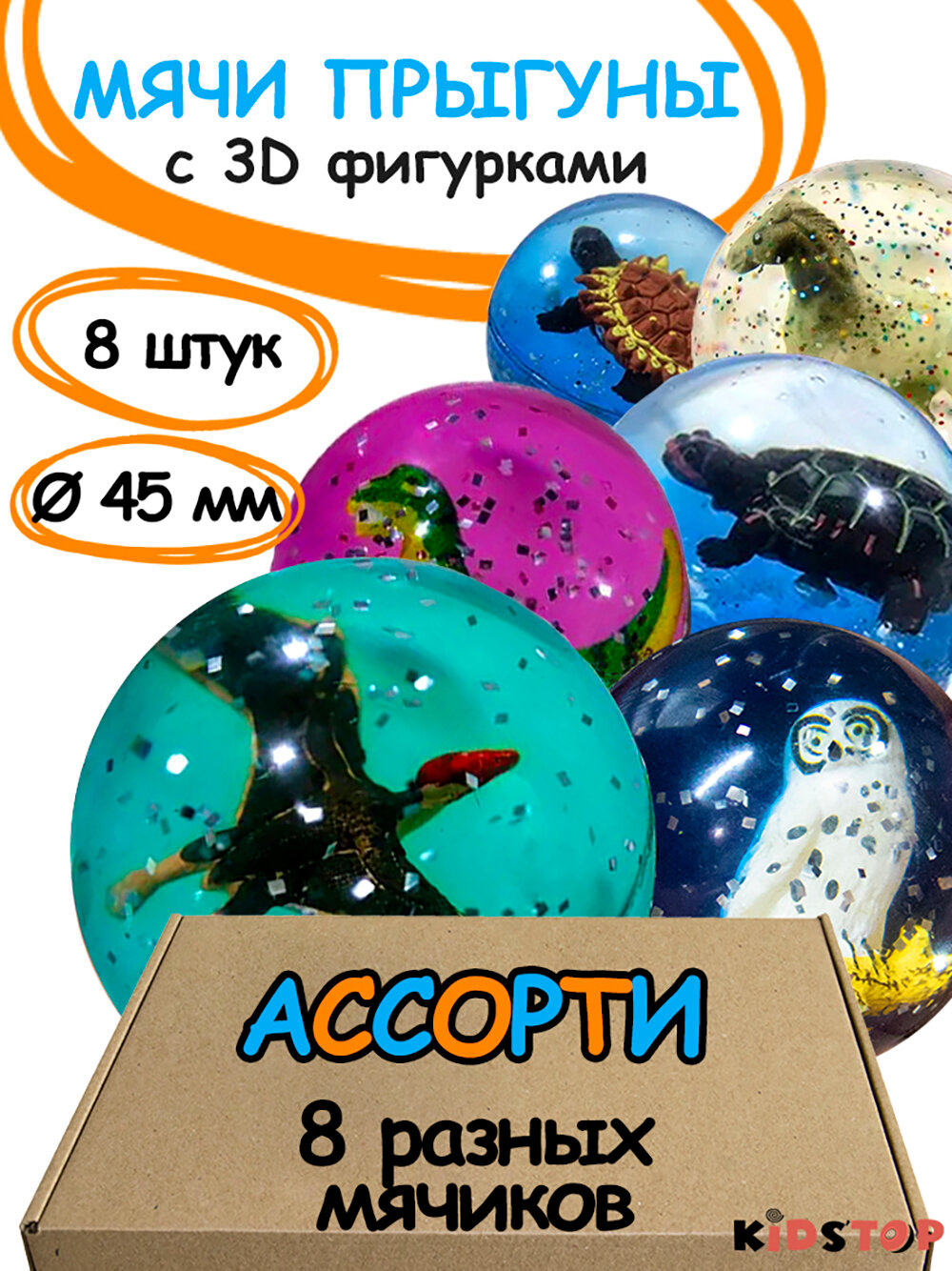 Купить Мячи-прыгуньи с 3d фигурками животных, 8шт