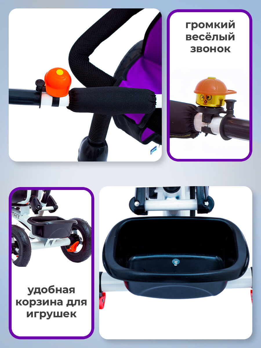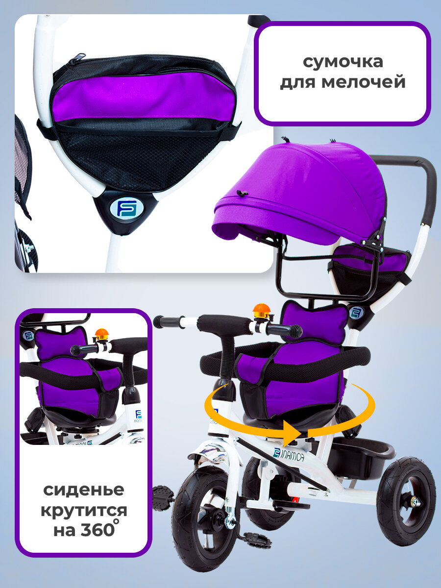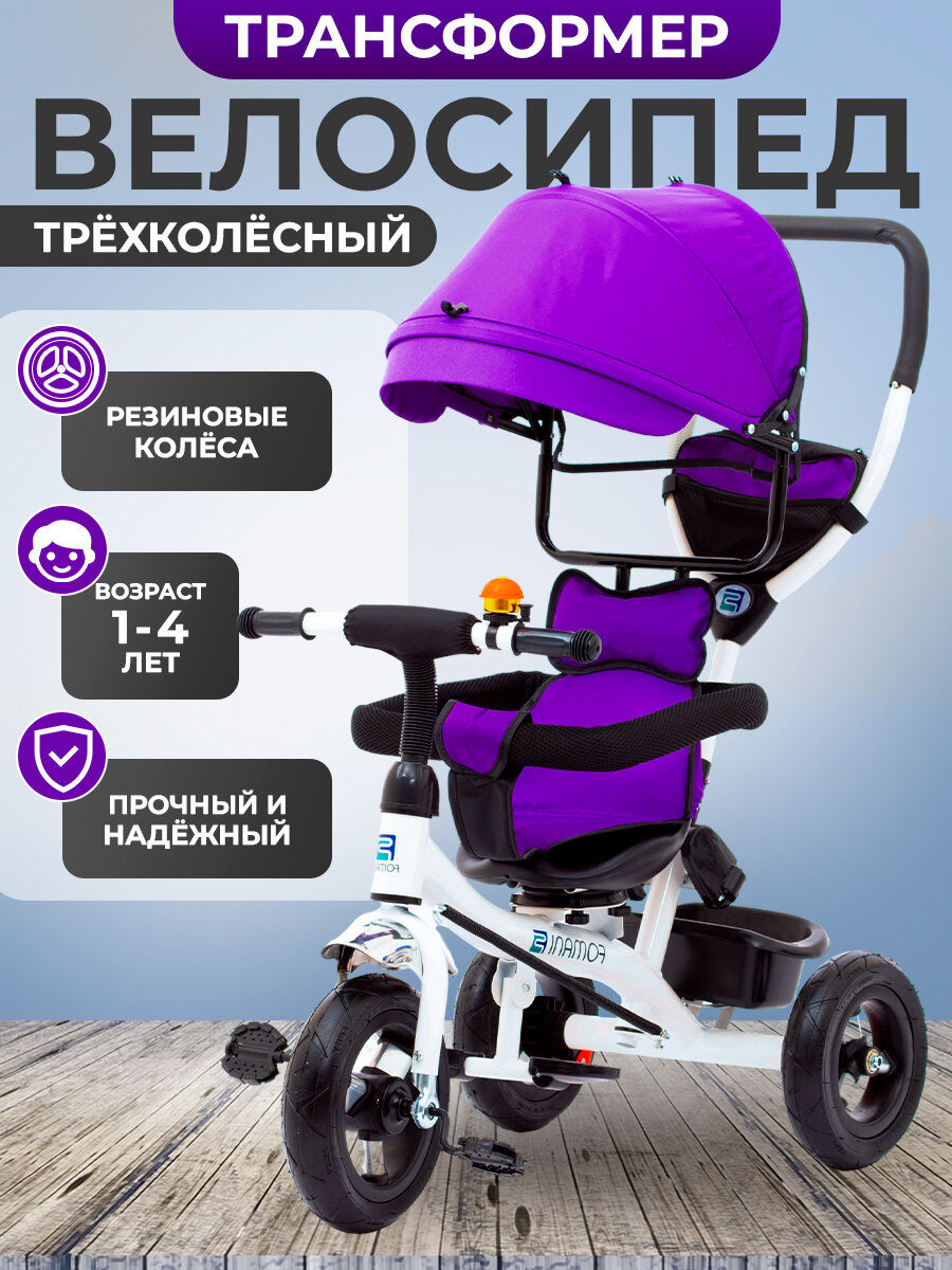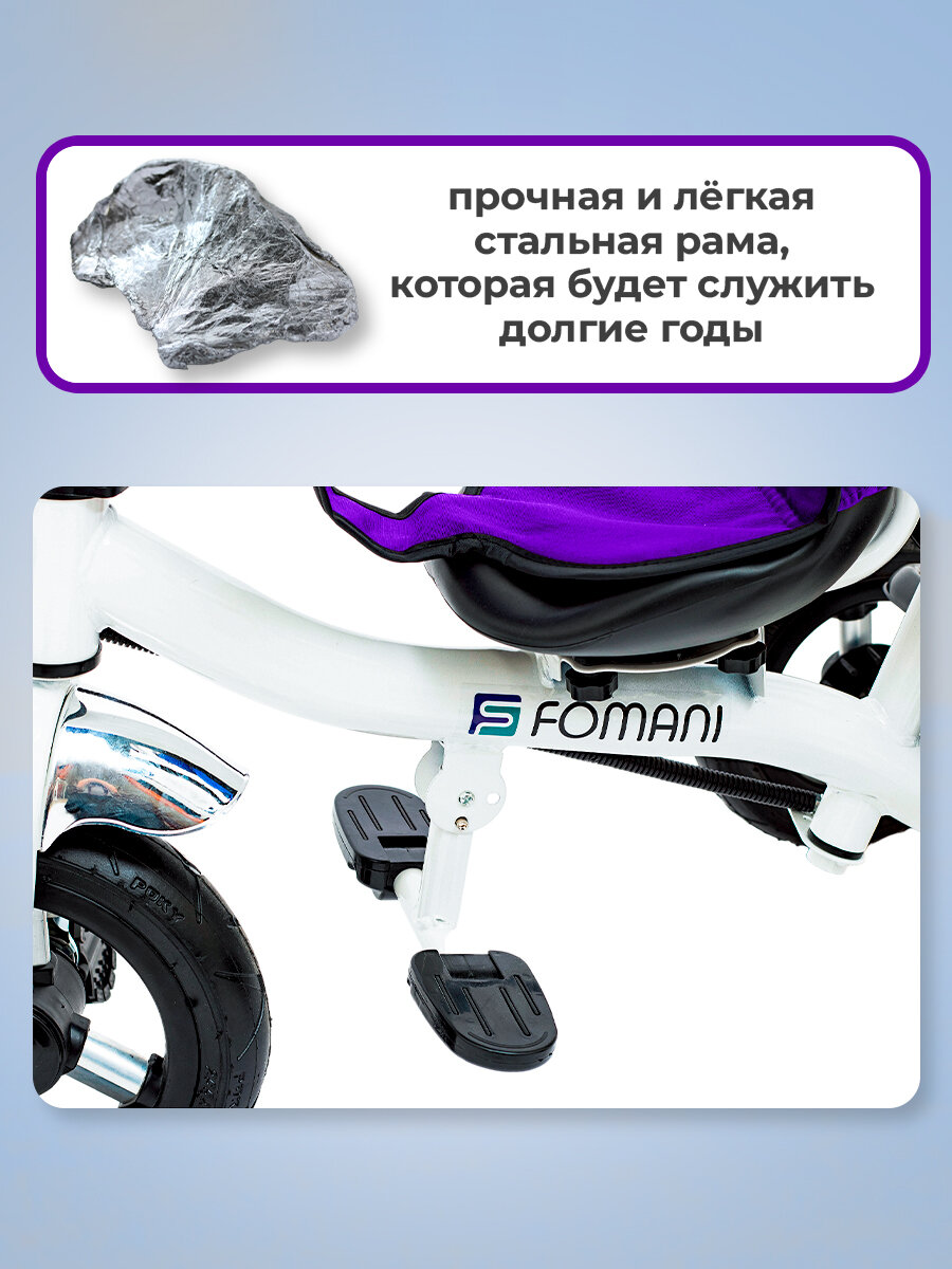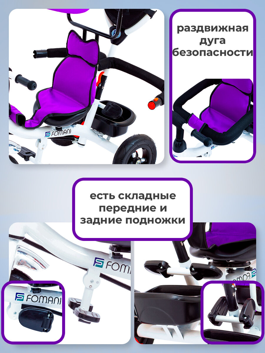 Детский трехколесный велосипед с ручкой FOMANI, с резиновыми колесами, фиолетовый интересное: