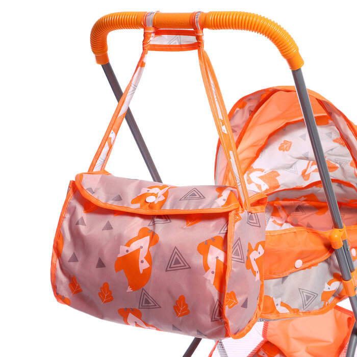 Коляска для кукол "Лисички" металлический каркас, с сумкой