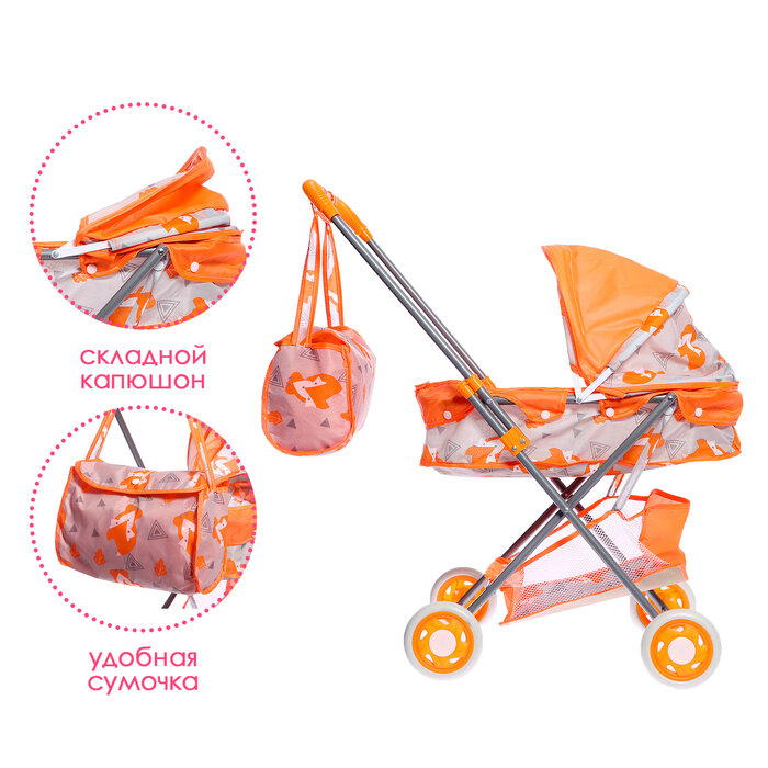 Купить Коляска для кукол универсальная "Лисички", металлический каркас, с сумкой 9826084 .