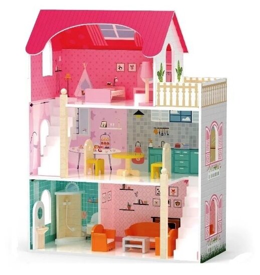 VIGA Кукольный дом 3 этажа 5 комнат с мебелью (дерево) 44570 с 3 лет