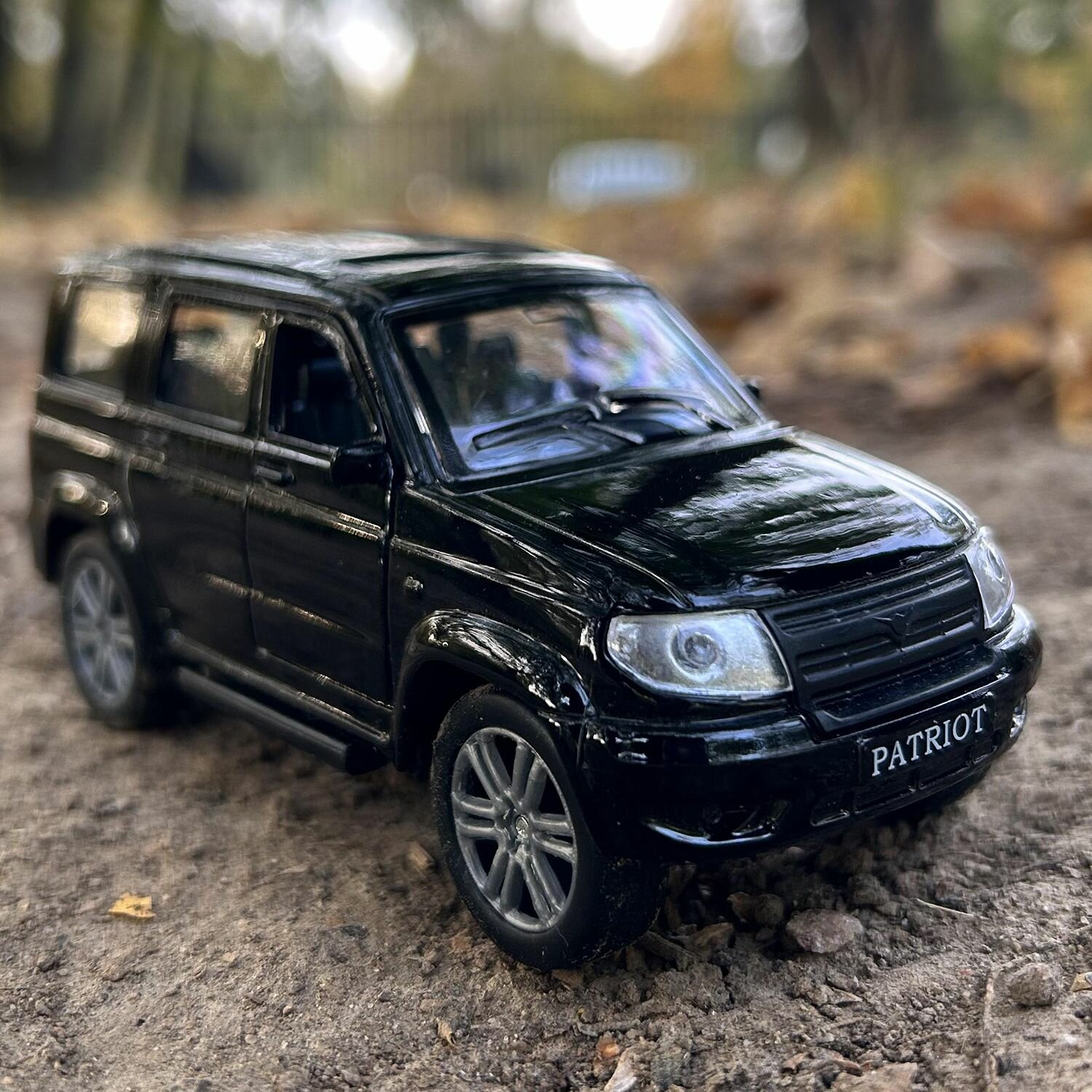 Машинка детская УАЗ Патриот 12 см, Технопарк, черная, открываются двери и багажник, металлический корпус
