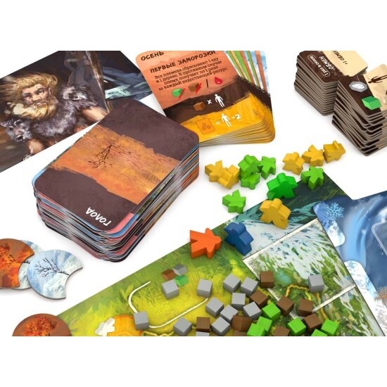 | Дополнительная информация | В состав настольной игры входят: 1 игровое поле; 5 планшетов игроков; 121 различный жетон; 105 карт; 85 кубиков; 14 фишек; 1 ширма; правила игры. |