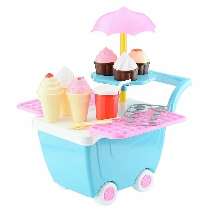| Комплектация | тележка / мороженое 3 шт. / кекс 3 шт. / подставка с мини-зонтиком / ложка чайная 3 шт. / стакан / монеты - 1 комплект |