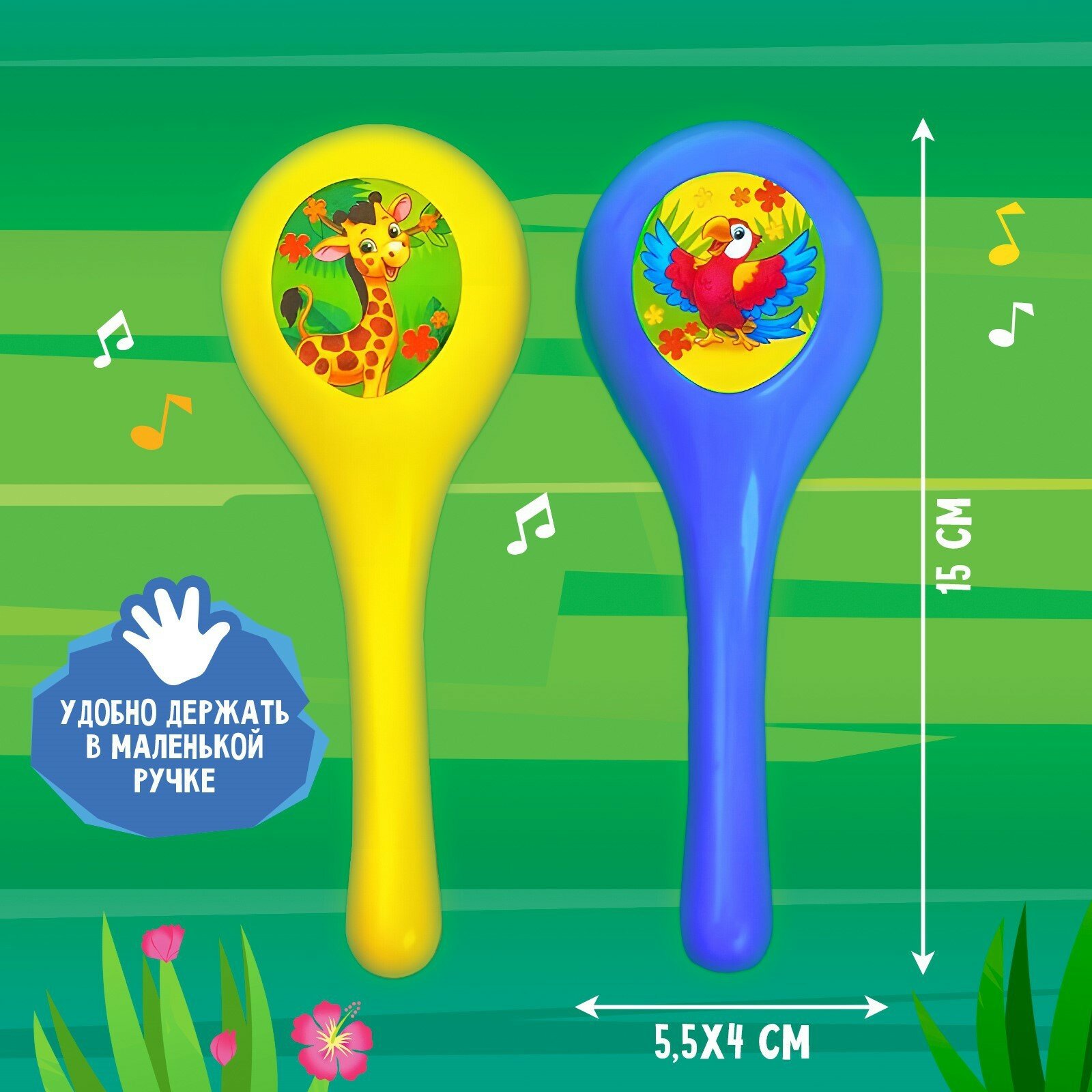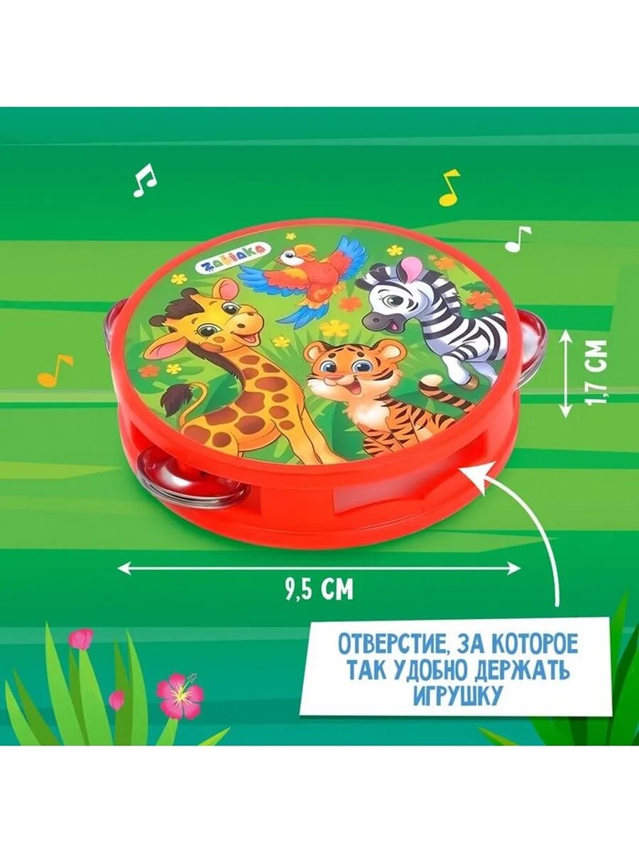 Набор музыкальных инструментов "Весёлый зоопарк": бубен, 2 маракаса, губная гармошка, микс интересное: