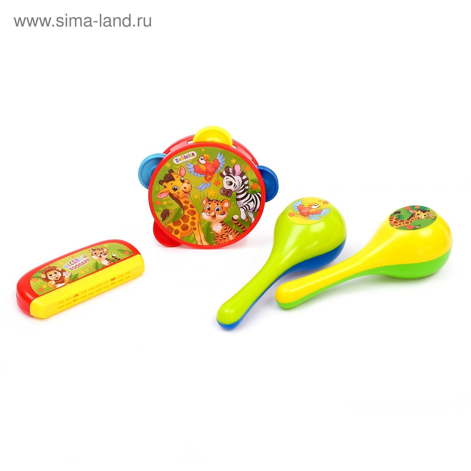 Купить Набор музыкальных инструментов "Весёлый зоопарк": бубен, 2 маракаса, губная гармошка, микс