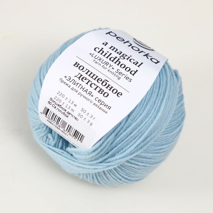 Пряжа Волшебное детство Пехорка, св.голубой - 60, 100% мериносовая шерсть, 5 мотков, 50 г., 220 м.