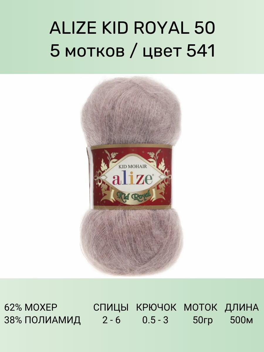 Пряжа Alize Kid Royal 50 норка (541), 62%кид мохер/38%полиамид, 500м, 50г, 1шт