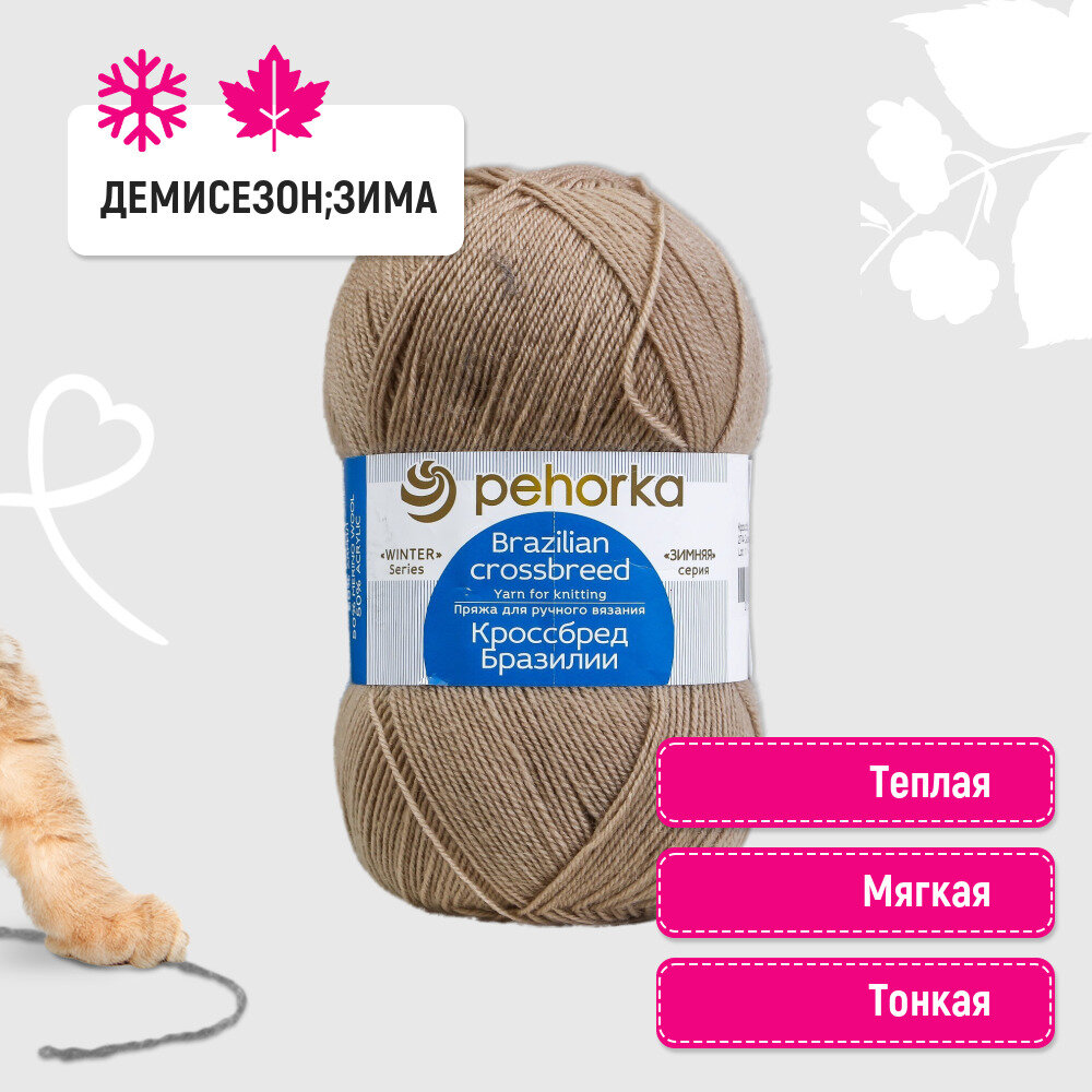 Пряжа для вязания Пехорка Кроссбред Бразилии 173 грильяж 100 гр/500 м 50% мериносовая шерсть, 50% акрил