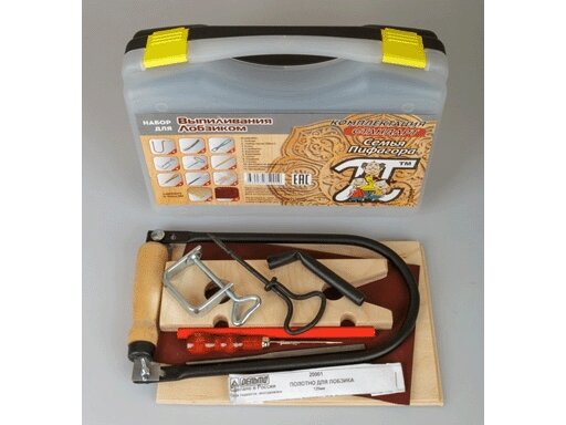 | В комплекте | заготовка для резьбы, лобзик, наждачная бумага, пилки, подставка, резцы по дереву, трафаретная доска |