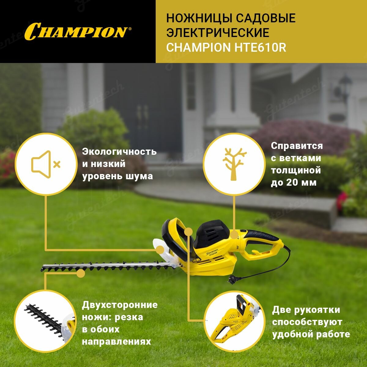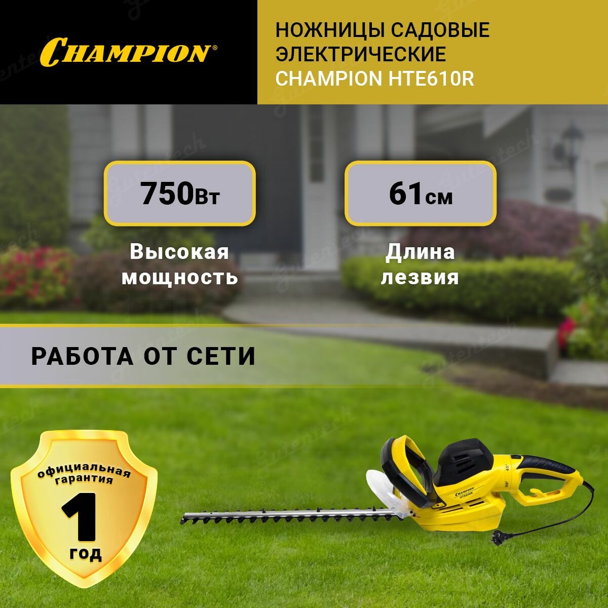 Кусторез электрический Champion HTE610R (750 Вт, 61 см)