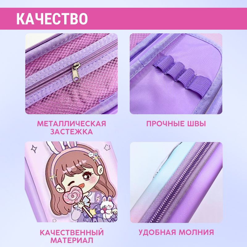 СохранитьПенал школьный 3д CANBI для мальчиков и девочек, good luck фиолетовая интересное: