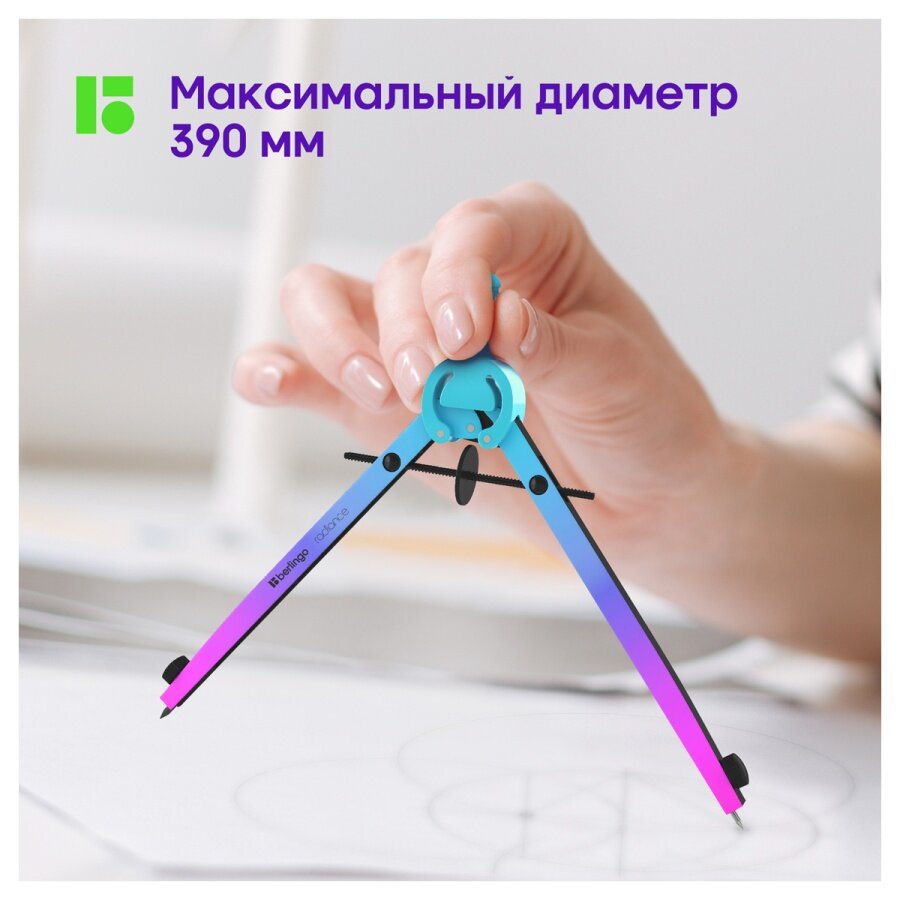 Купить Циркуль Berlingo Radiance 390мм 2 предмета голубой зеленый DS_01002a