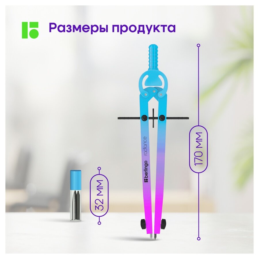 Готовальня Berlingo Radiance, 2 предмета, циркуль 170 мм, голубой, зеленый градиент (DS_01002a)