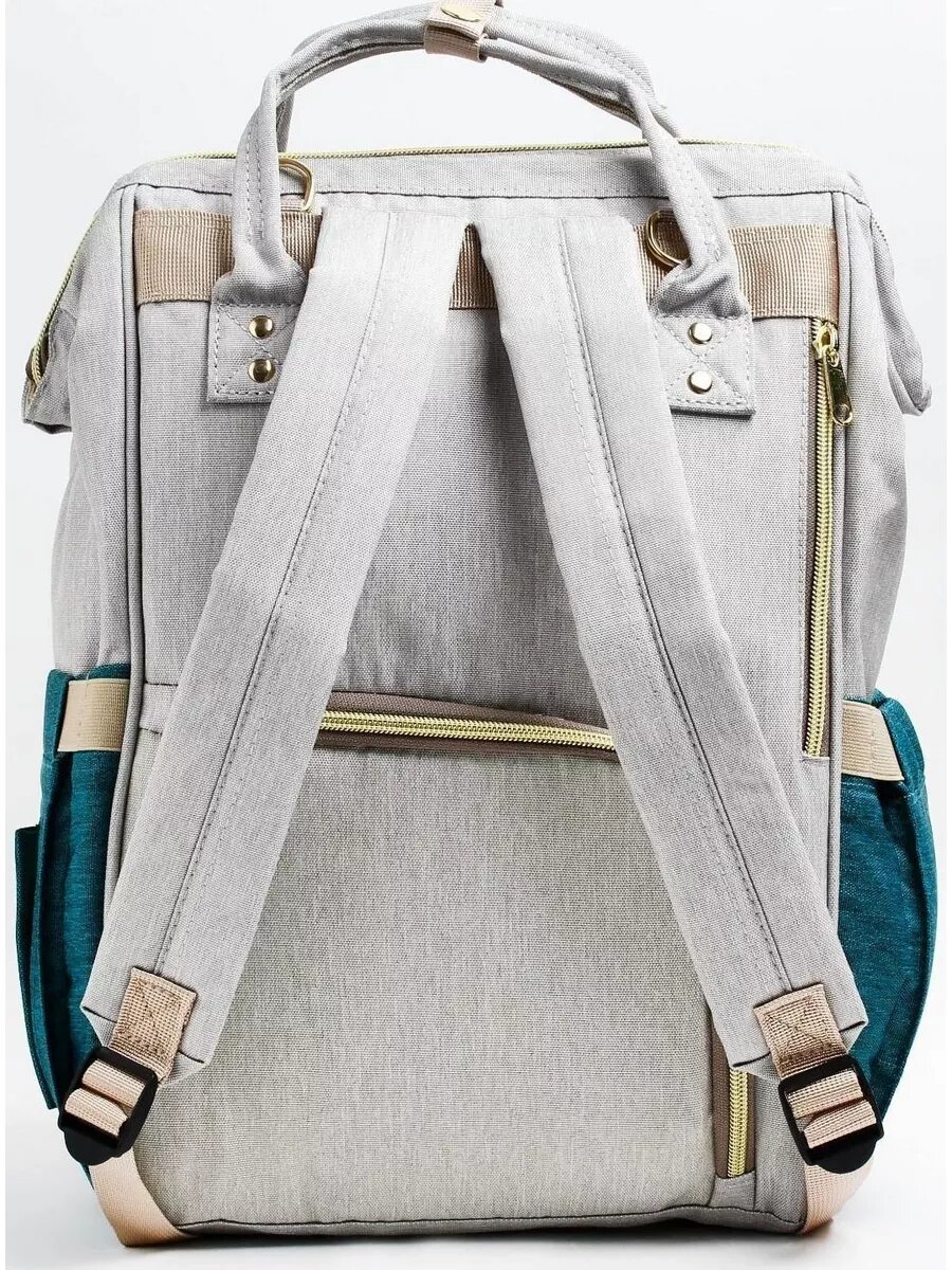 Сумка рюкзак для мамы и малыша с термокарманом, термосумка - портфель, цвет серый/зеленый