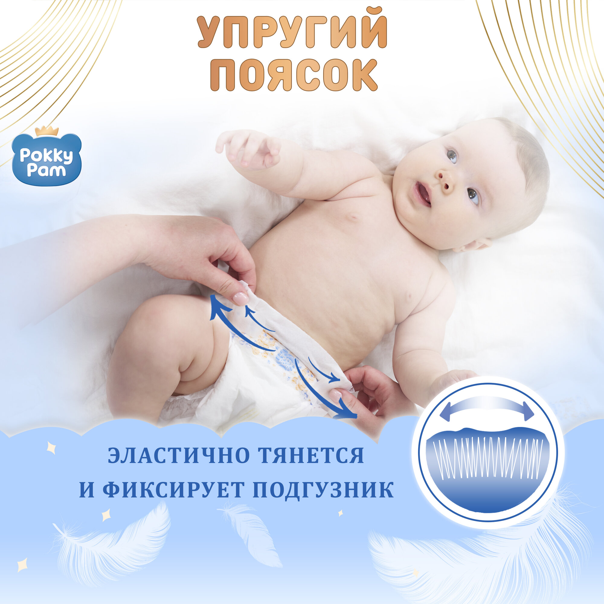 Подгузники детские, для детей, новорожденных POKKY PAM, размер M, 6-11 кг