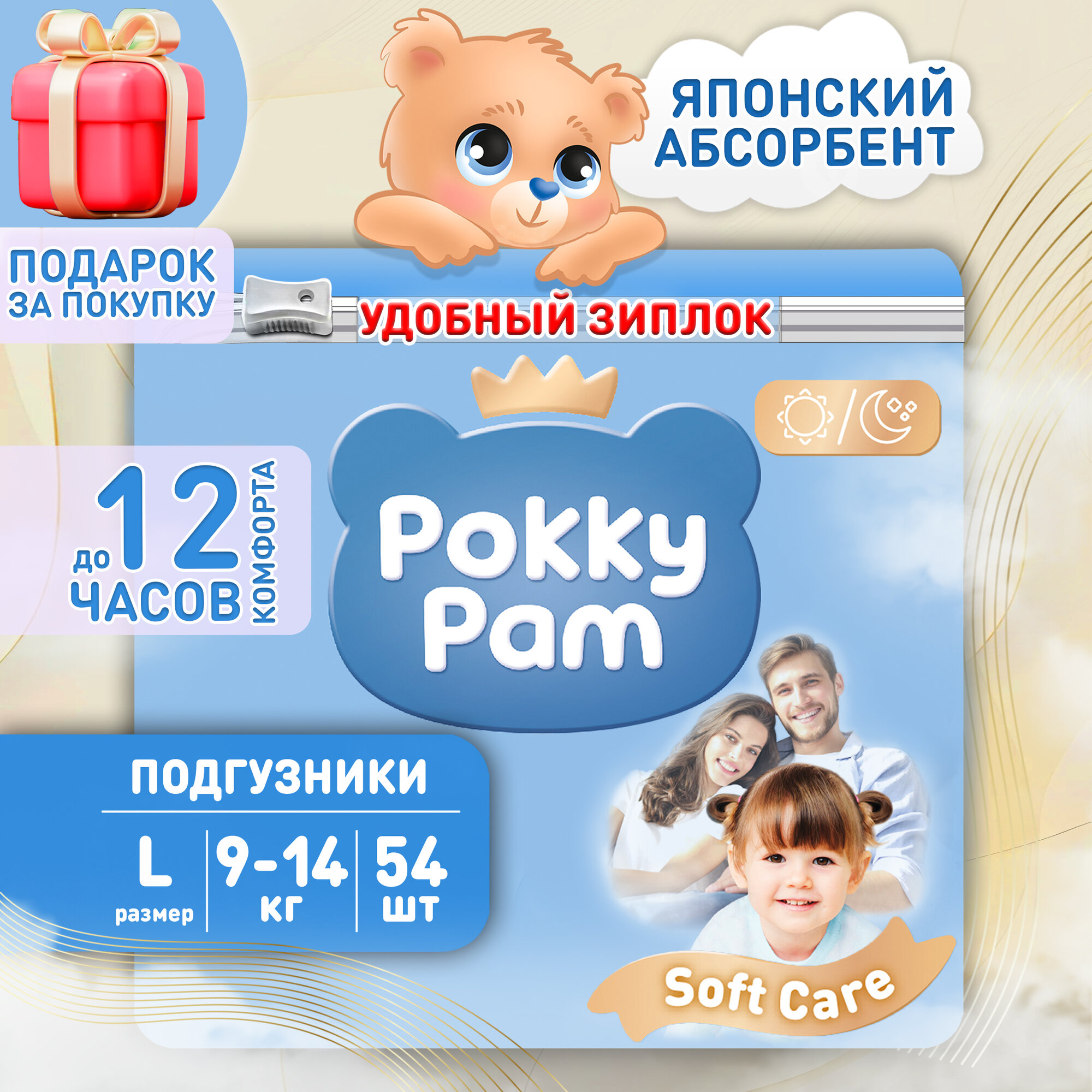 Подгузники детские, для детей, новорожденных POKKY PAM, размер L, 9-14 кг интересное: