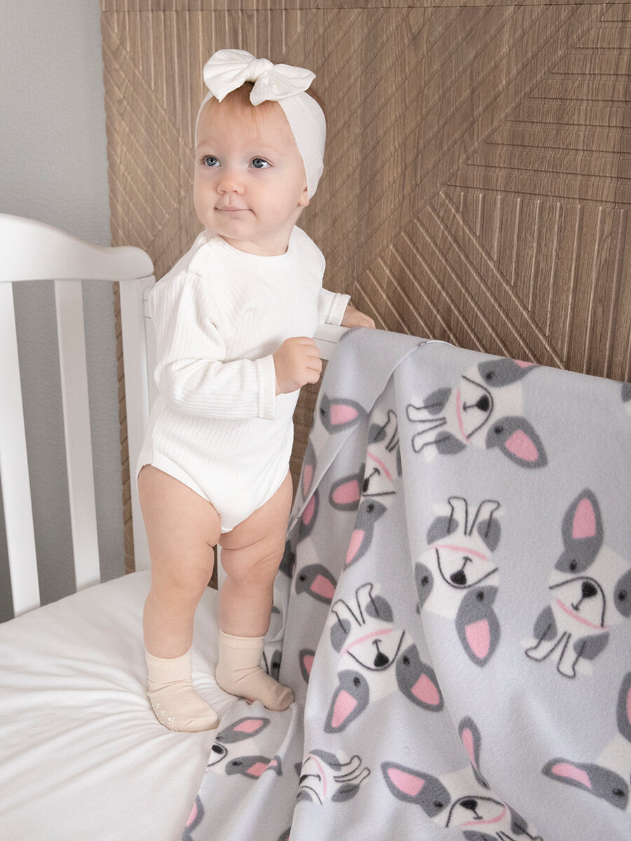 Плед для новорожденных флисовый в кроватку, коляску 100х118 см. "Ушастики" Baby Nice