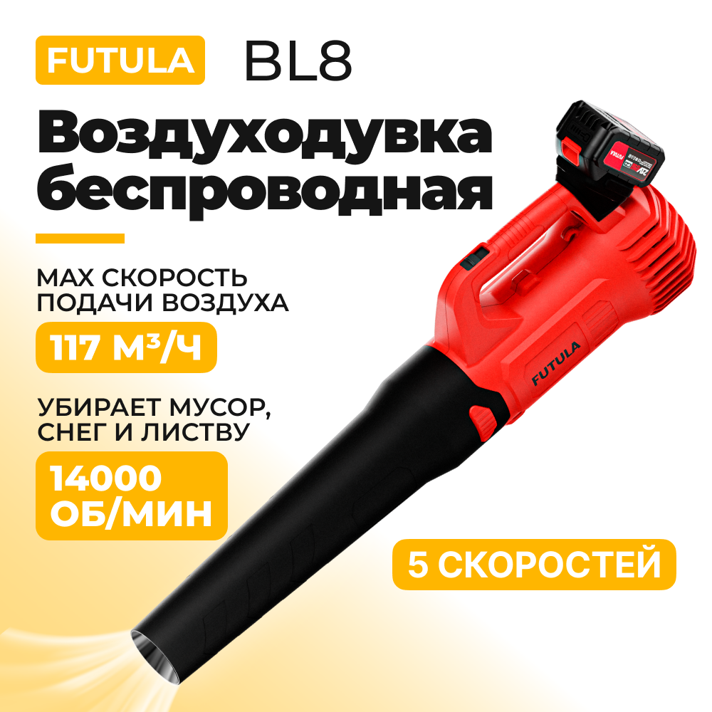 Аккумуляторная Воздуходувка Futula BL8 максимальная скорость воздушного потока 117 м³/ч и объем 823 м³/мин