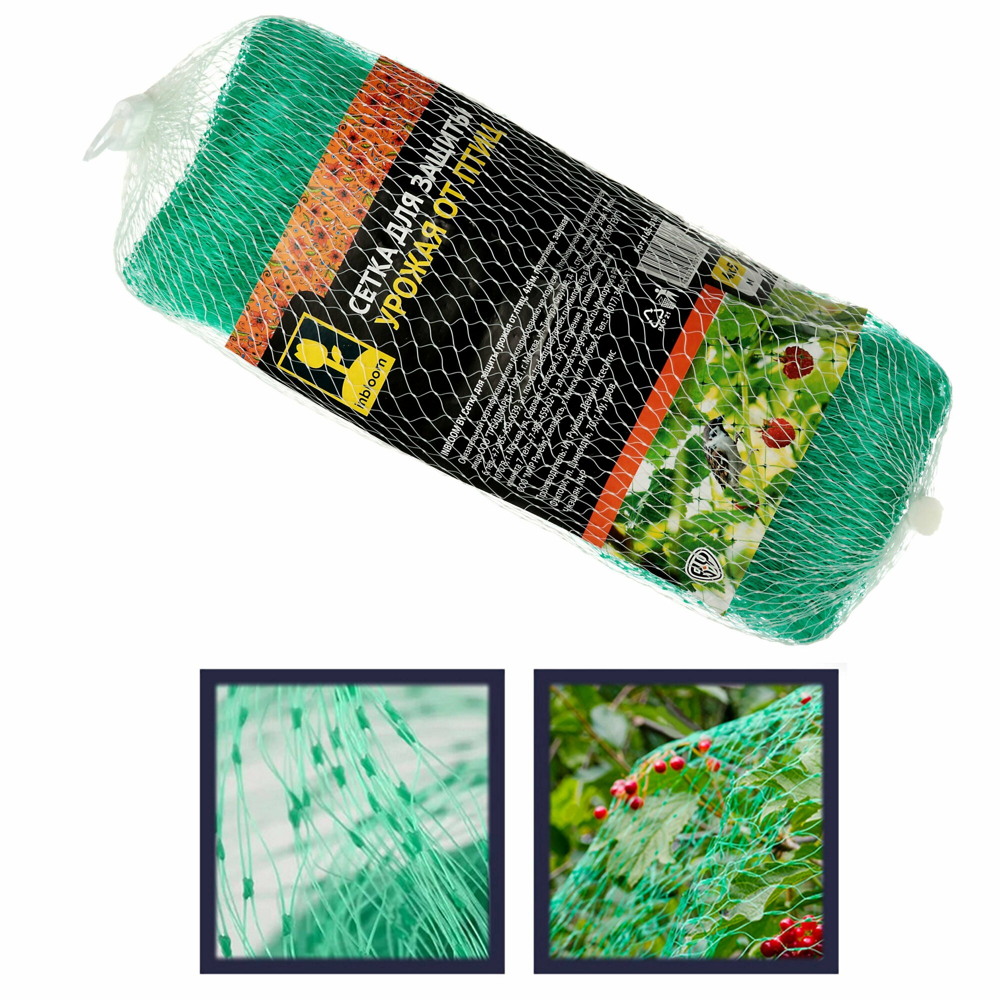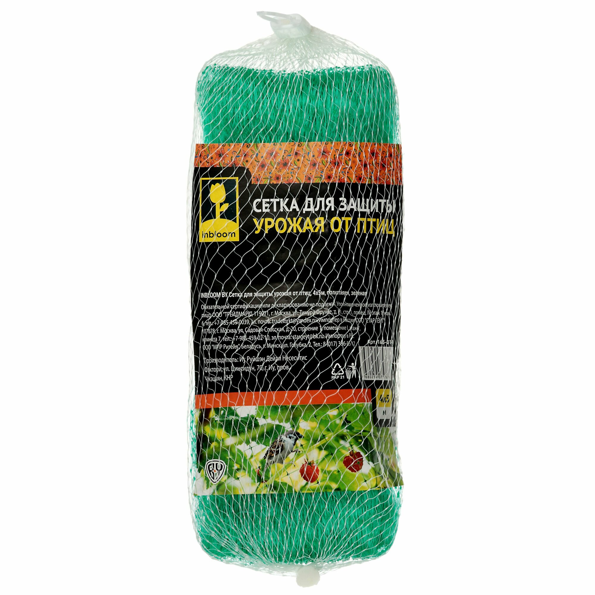 INBLOOM Сетка для защиты урожая от птиц, 4х5м, полиэтилен, зеленая