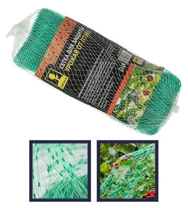 Сетка от птиц садовая для защиты урожая, 4х5 м, полиэтилен, зеленая INBLOOM BY интересное: