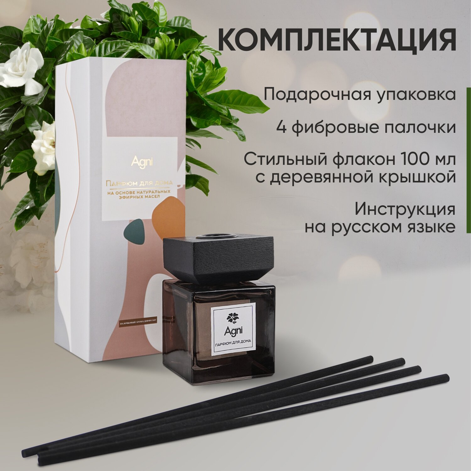 СохранитьАроматизатор для дома "Гардения", 100 мл, AGNI Senses. Аромадиффузор на натуральных эфирных маслах, с 4 фибровыми палочками интересное: