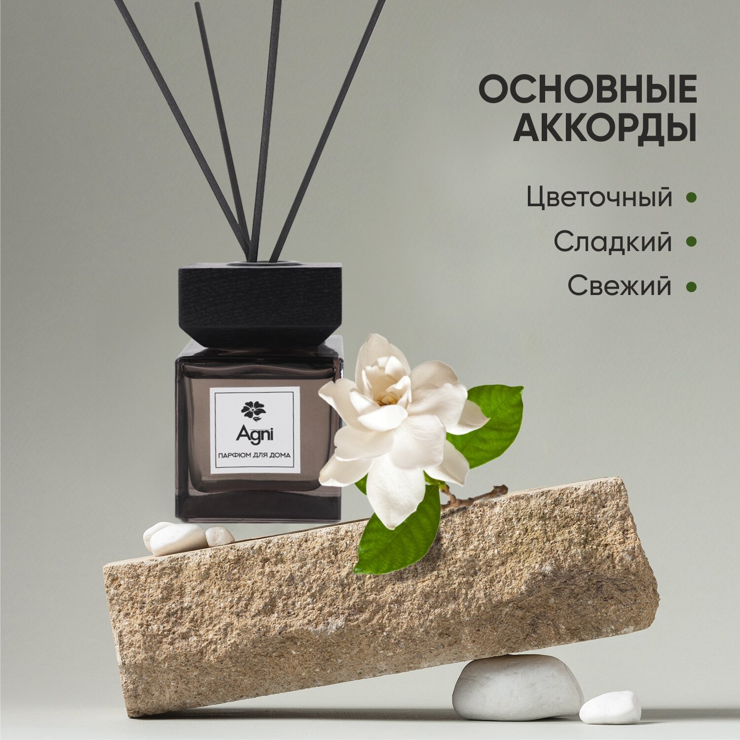 Купить Ароматизатор для дома "Гардения", 100 мл, AGNI Senses. Аромадиффузор на натуральных эфирных маслах, с 4 фибровыми палочками