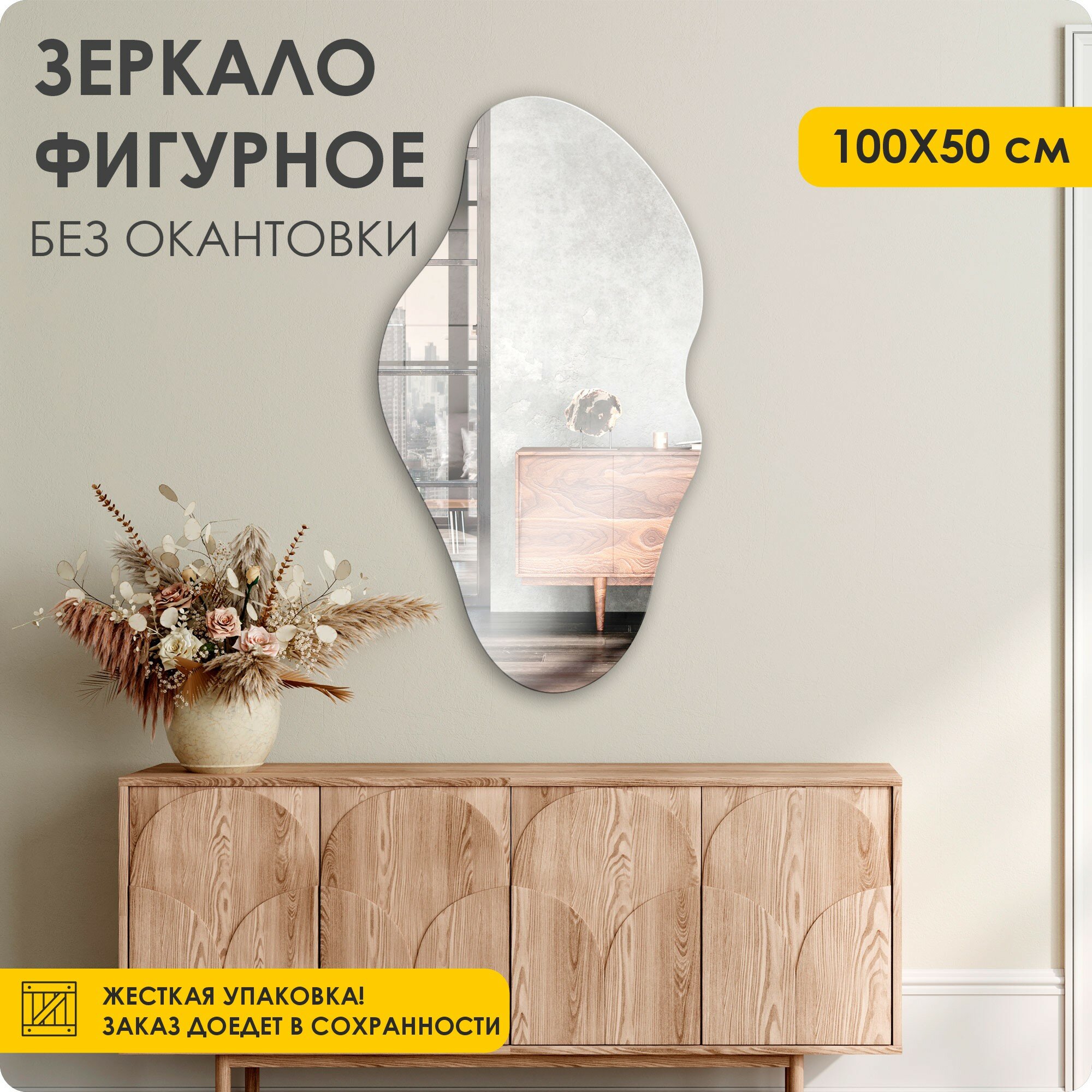Зеркало настенное, зеркало, 50х100 фигурное, без канта интересное: