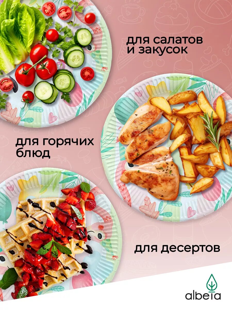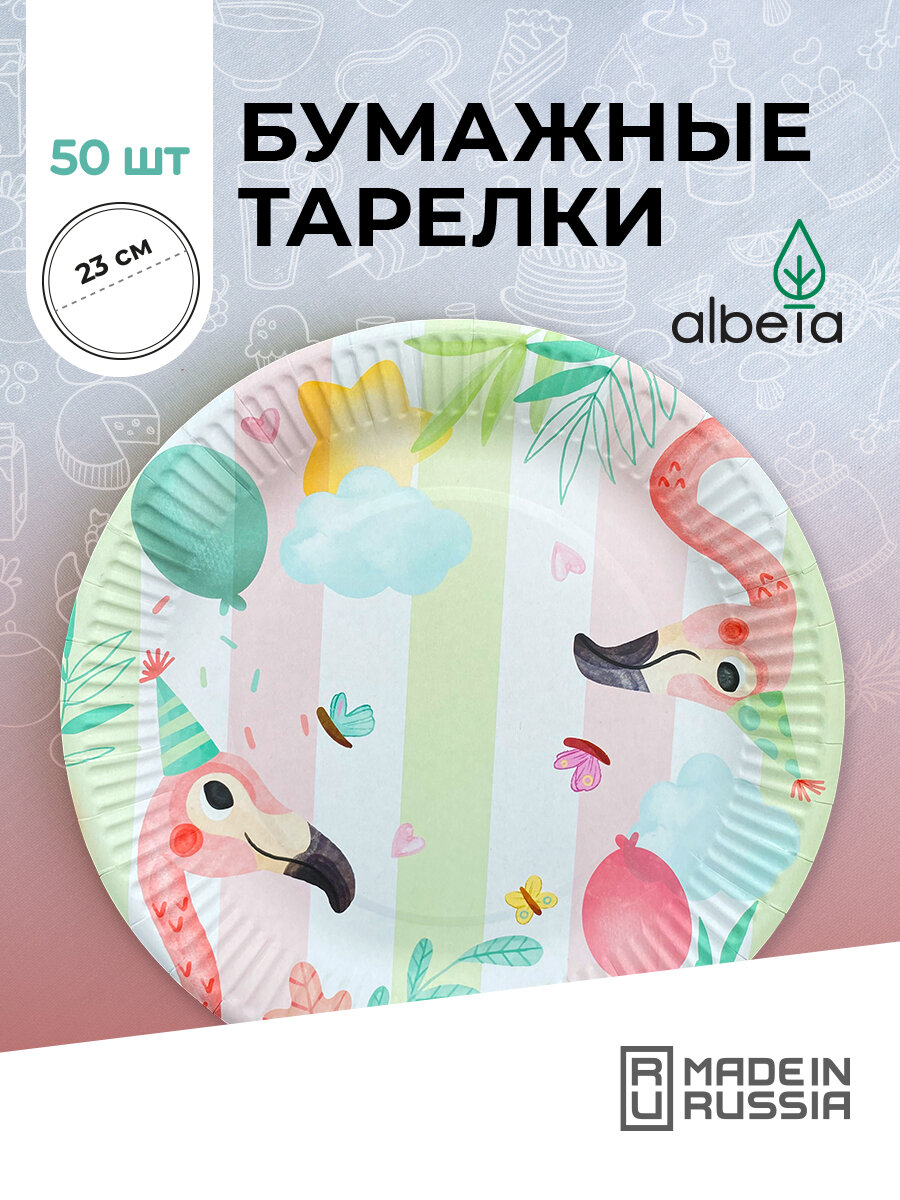 Тарелки одноразовые бумажные для детей набор 50 шт 23 см, принт "Фламинго" интересное: