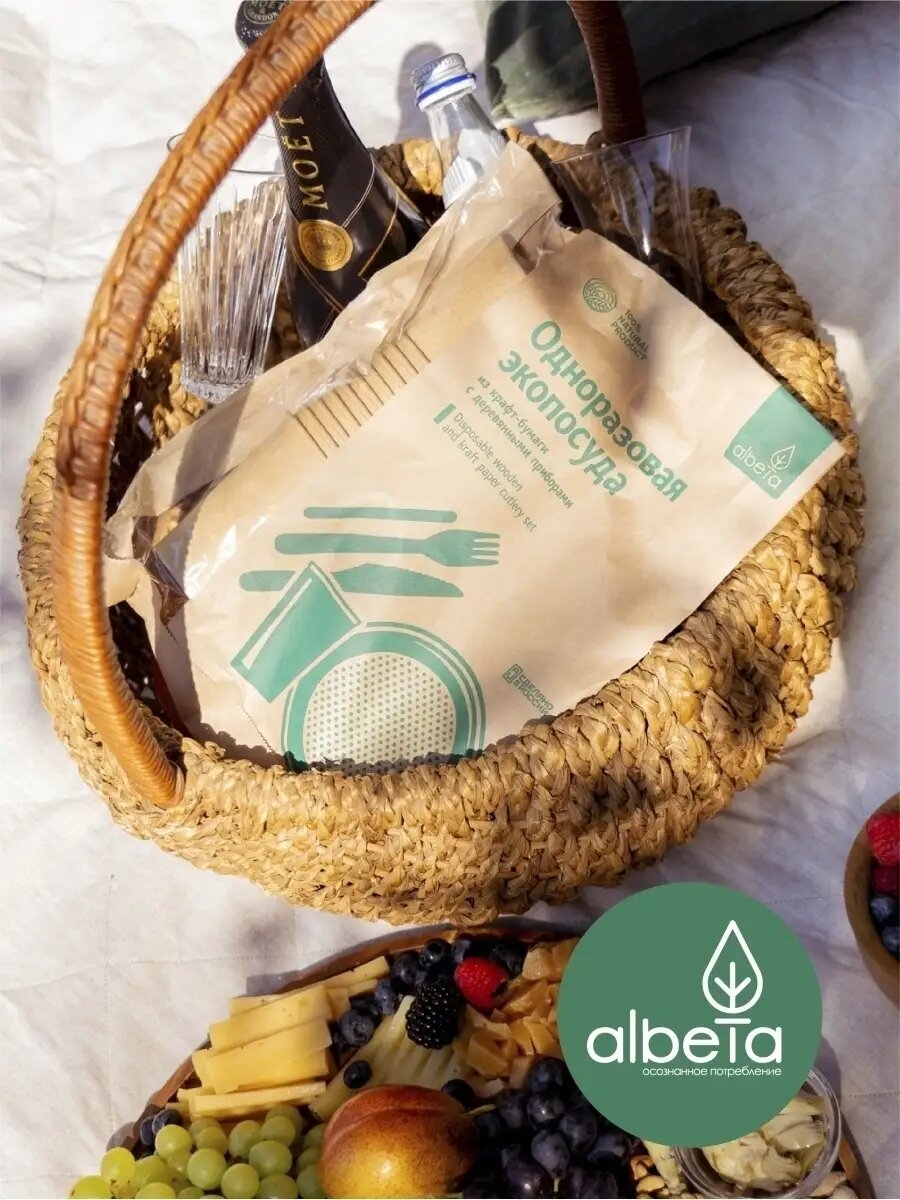 СохранитьОдноразовая посуда для праздника (тарелки, стаканчики, вилки, ножи) крафт набор на 10 персон интересное: