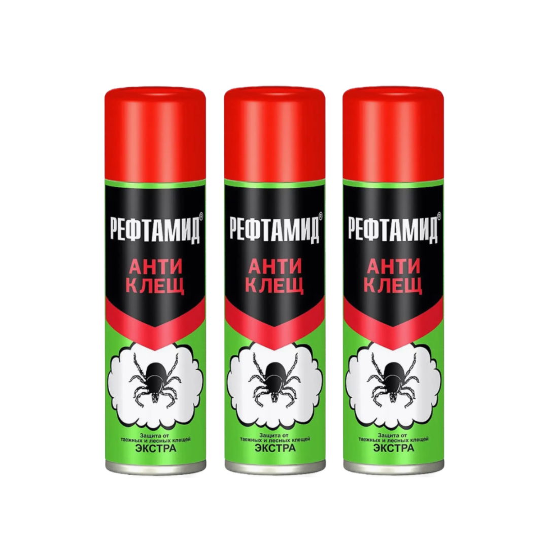 Спрей от клещей Рефтамид Антиклещ Экстра Инсектоакарицид 145мл. До 8 часов защита от насекомых. 3 штуки в комплекте