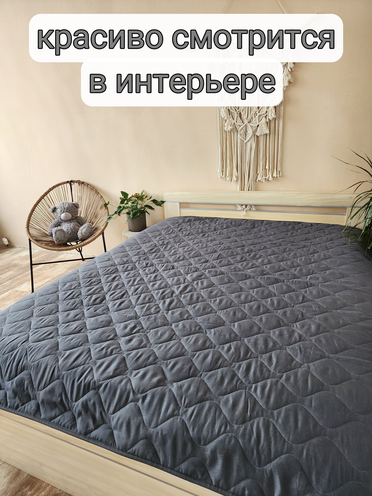 Непромокаемое покрывало от животных 200х210см серое, плед непромокаемый, водонепроницаемое покрывало стеганое "Маленький собачъ" интересное: