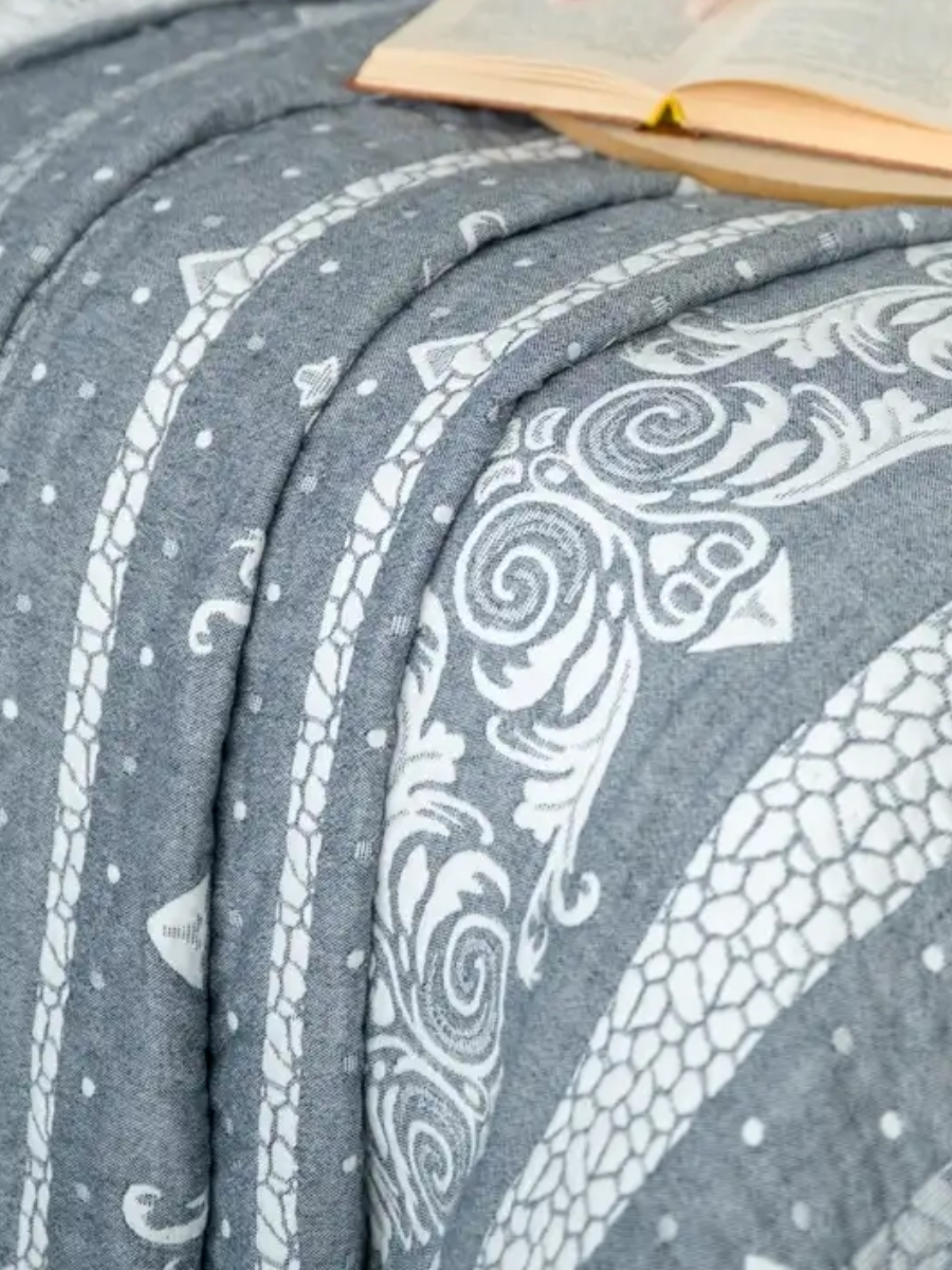 Покрывало 7Я 240х200, двухстороннее, хлопок 100%, темно-серое, абстрактный узор и орнамент интересное: