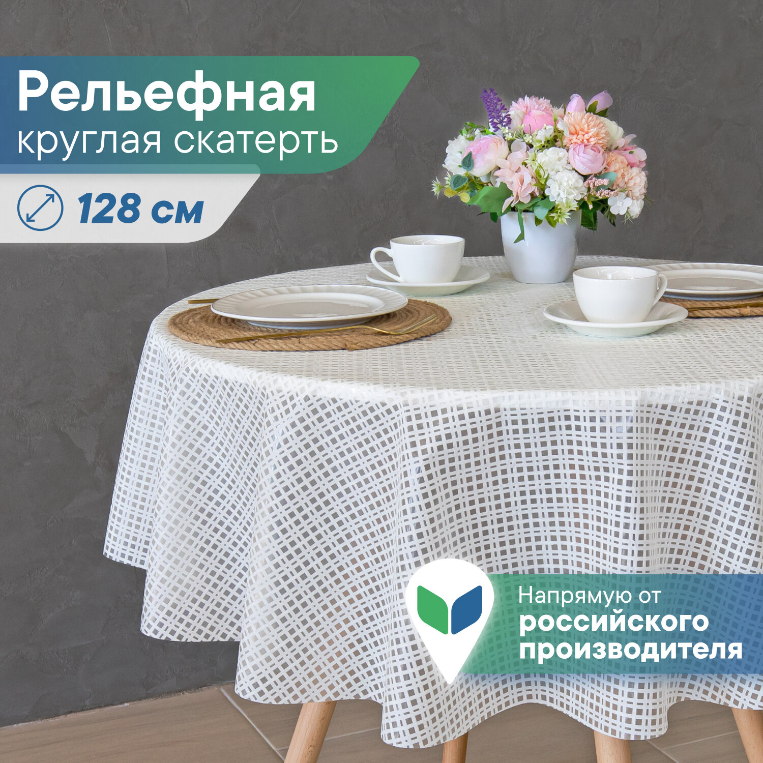 СохранитьСкатерть круглая клеенка на стол ПВХ VILINA "Элегия" диаметр 128 см. водонепроницаемая с узором / скатерть праздничная белая 010-white интересное: