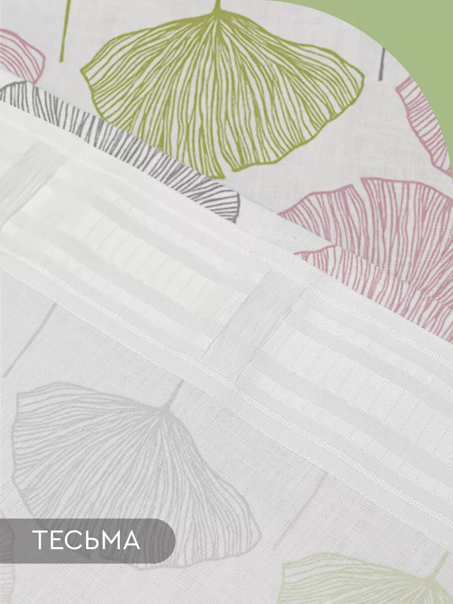 Штора кухонная Василиса 145х260 см, Рогожка, 100% хлопок, Тесьма, Травы