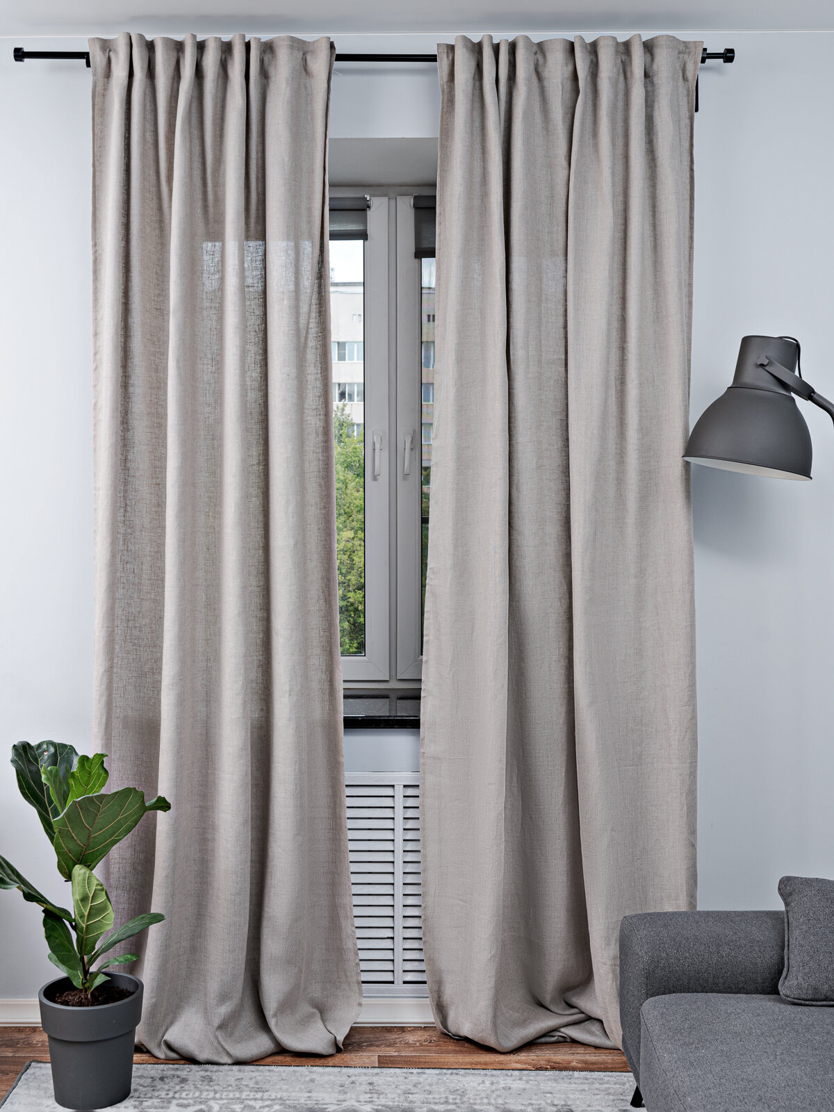 Штора льняная интерьерная RUSBY by IKEA 145х300 см, 1 шт, Тесьма, Серый уголь
