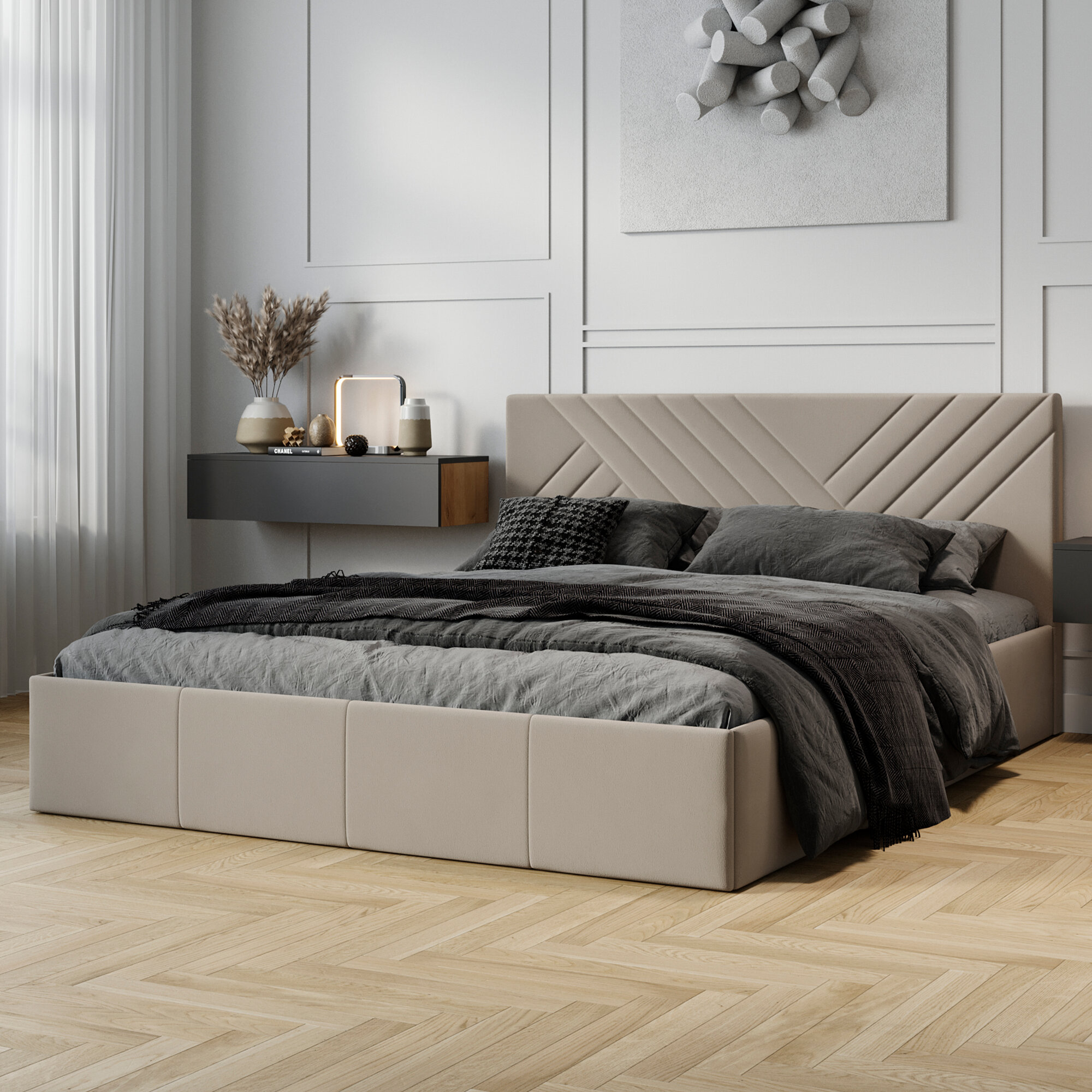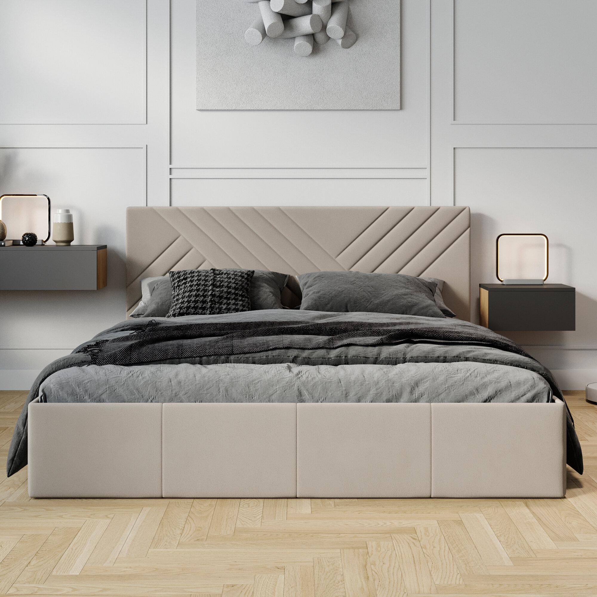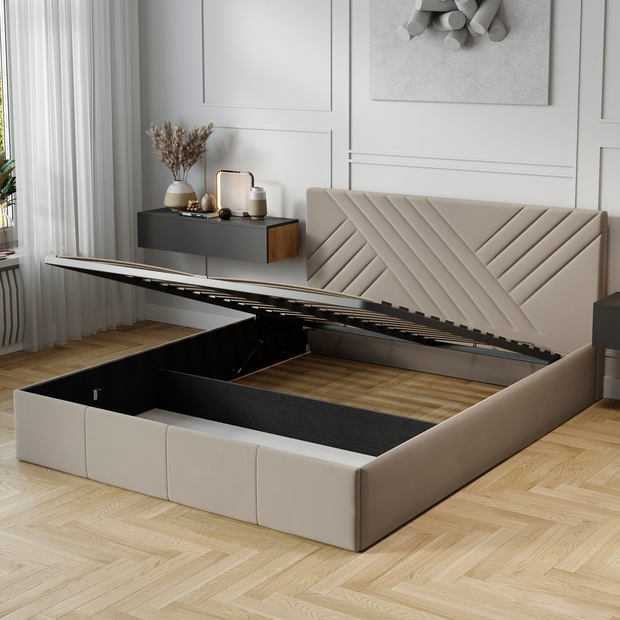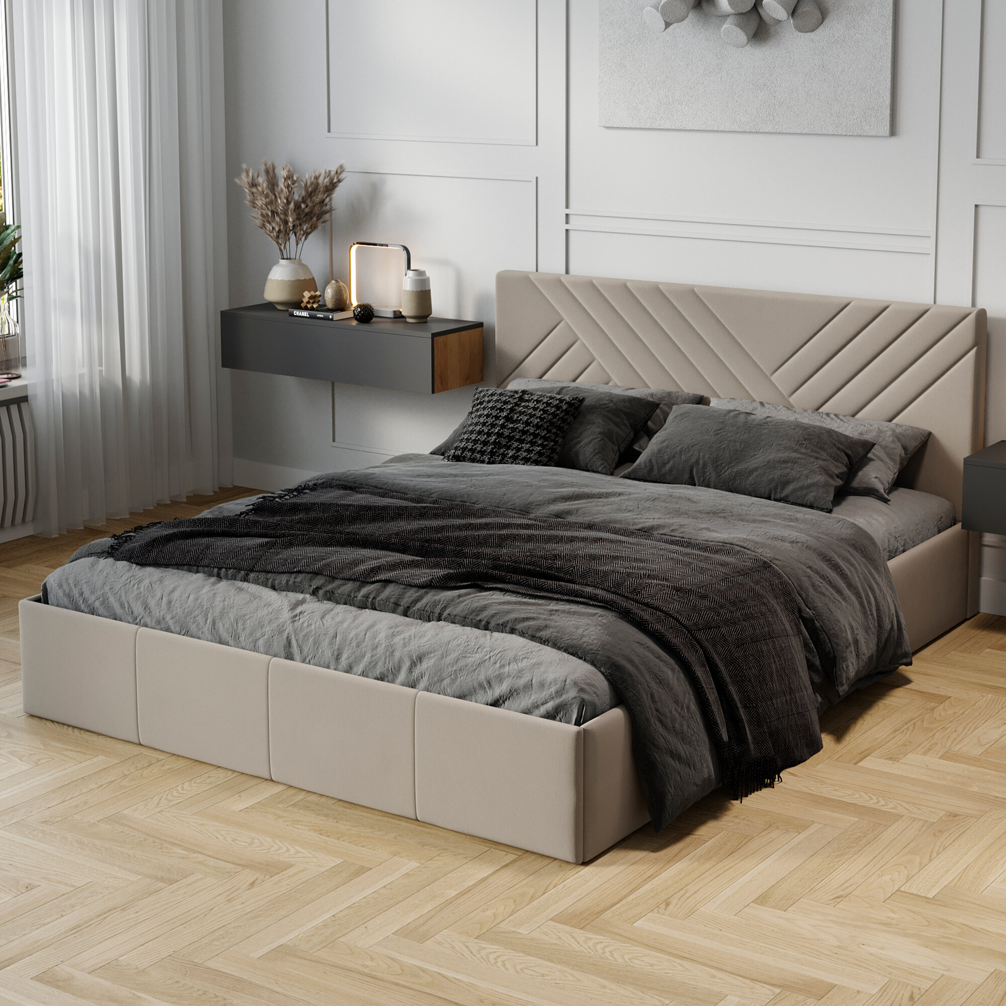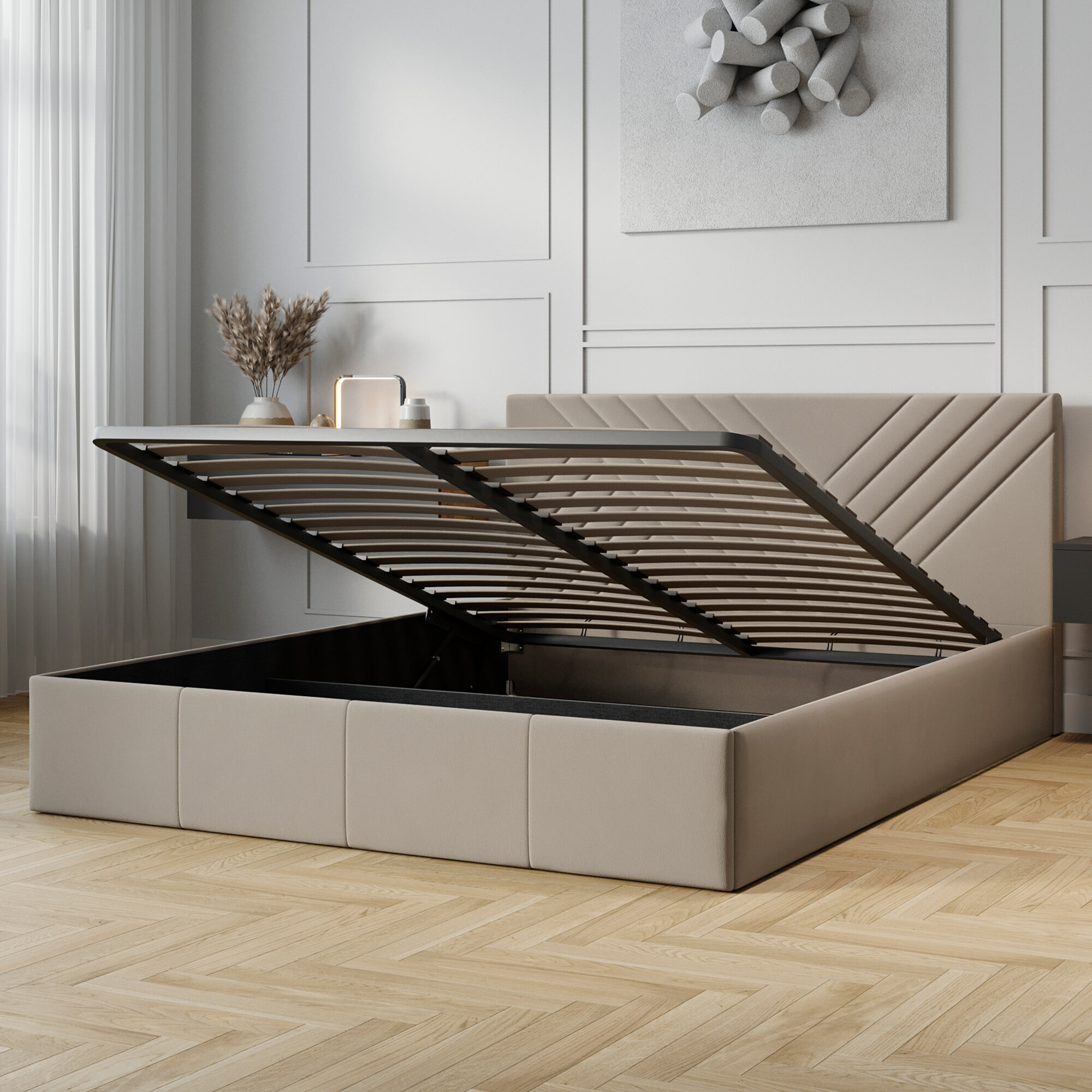 Кровать двуспальная FRENT 180х200 с подъемным механизмом, Дэлли, Велюр Confetti Stone