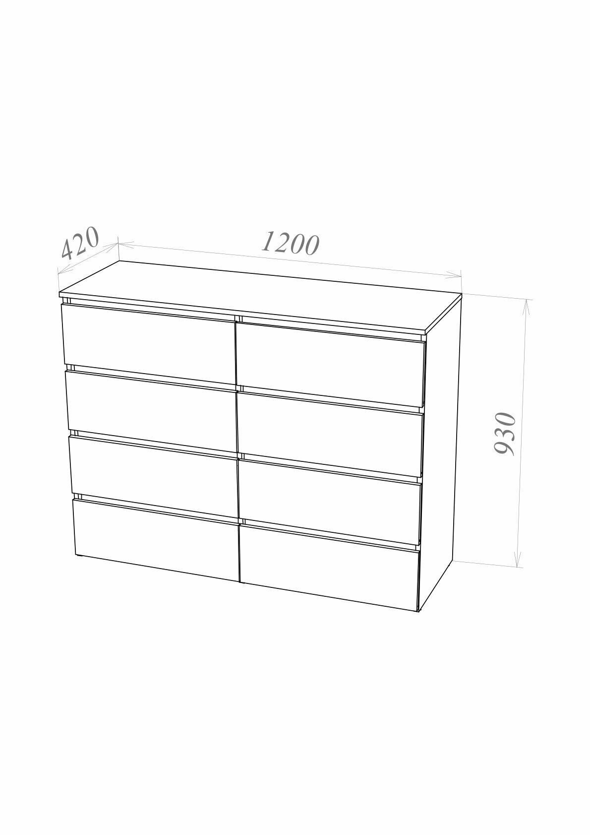 Комод с 8 ящиками К-23 Крафт светлый 93х120х42 см.