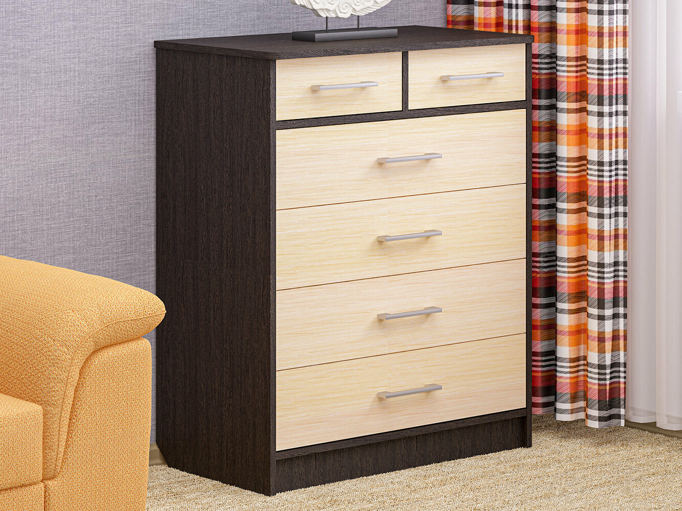 Купить Комод-11 МК "Пирамида" 6 ящиков, 80х45х99см, венге/дуб молочный