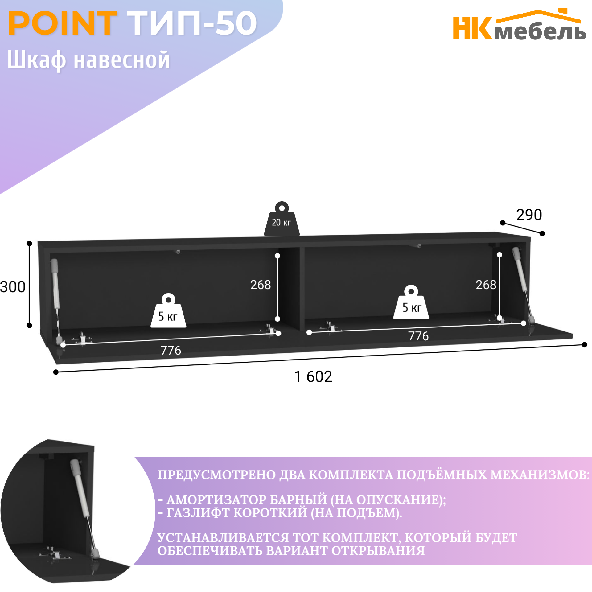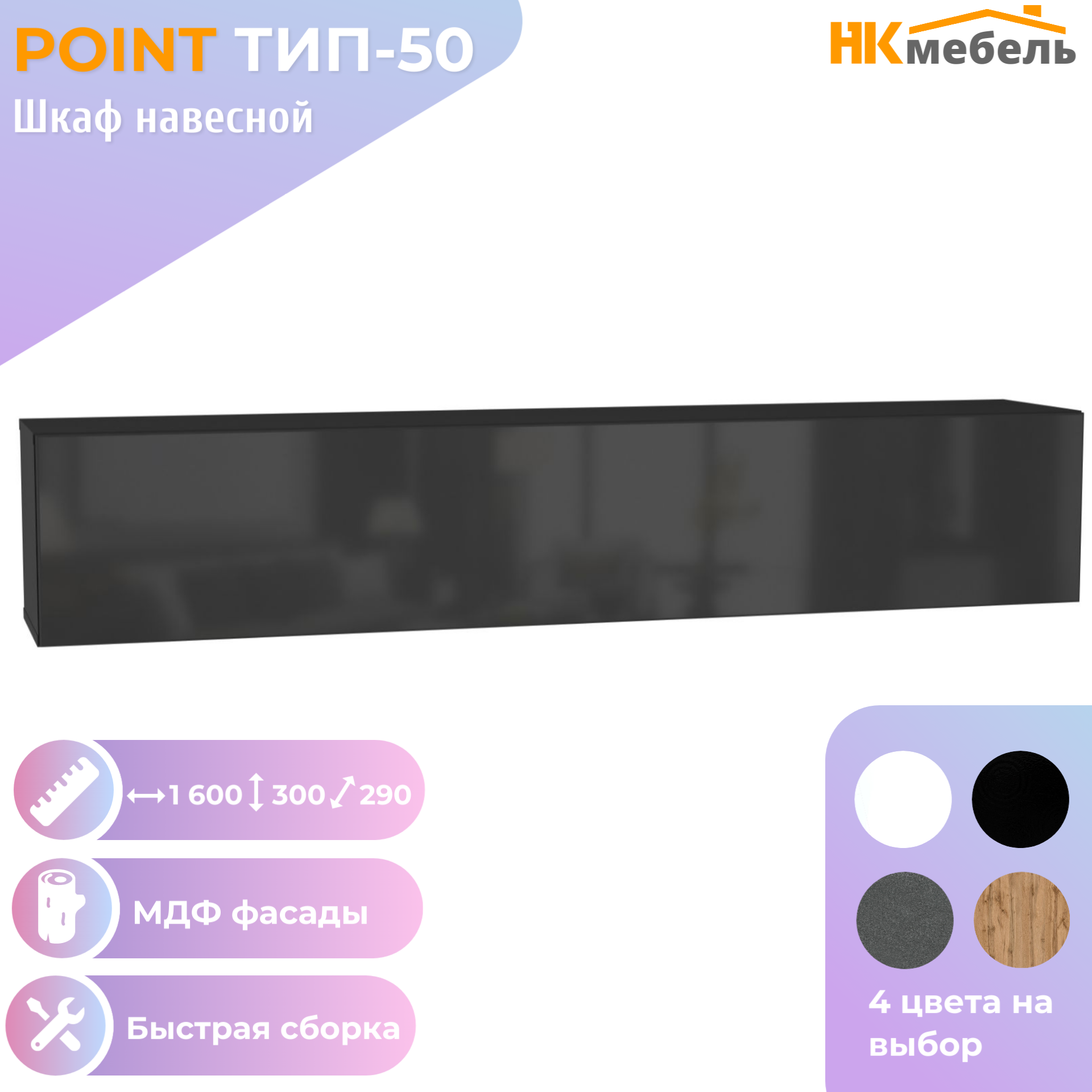 Point ТИП-50 шкаф навесной Чёрный/Чёрный глянец / размер (ДхШхВ) 160х29х30 см