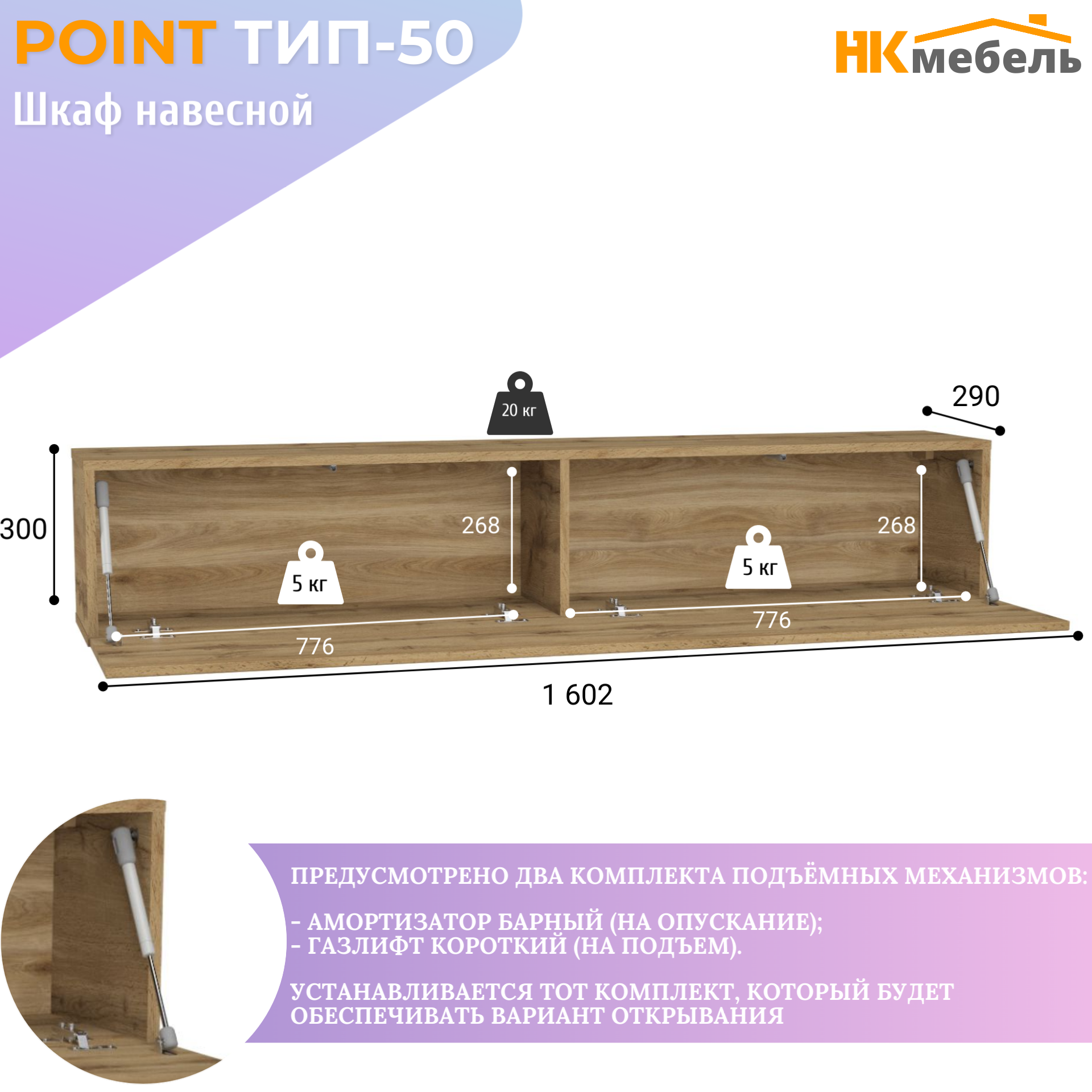 Купить POINT ТИП-50 шкаф навесной, 160 х 30 х 29 см, МДФ/ЛДСП, Дуб Вотан
