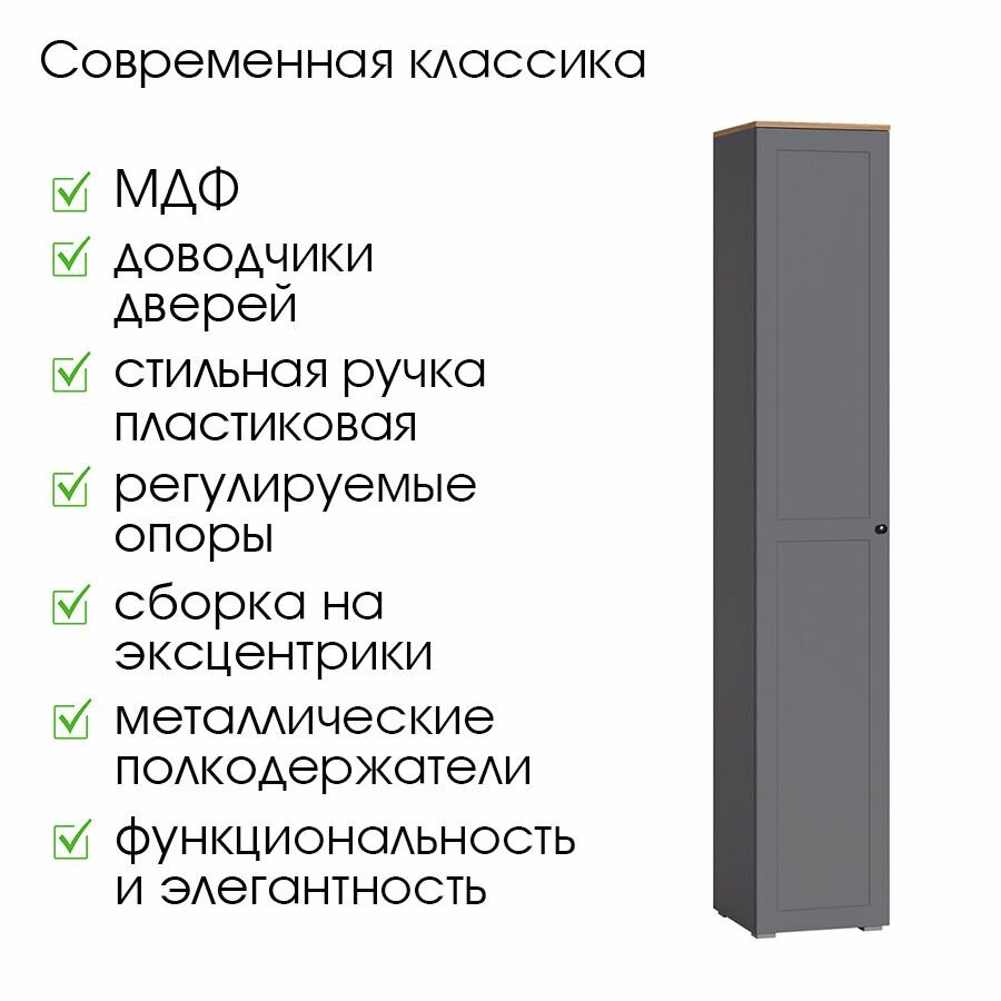 Шкаф-пенал Моби Остин 13.227 серый графит / дуб золотой 40x41.9x229.8 см