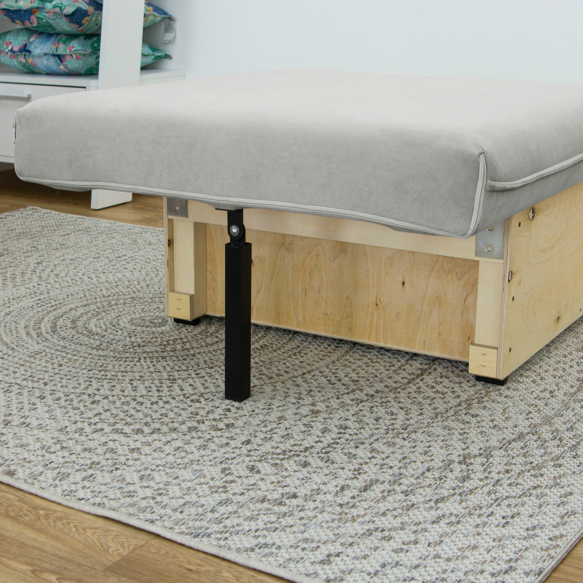 | Особенности | антивандальная обивка, без подлокотников, раскладная конструкция, съемные подушки, ящик для белья |