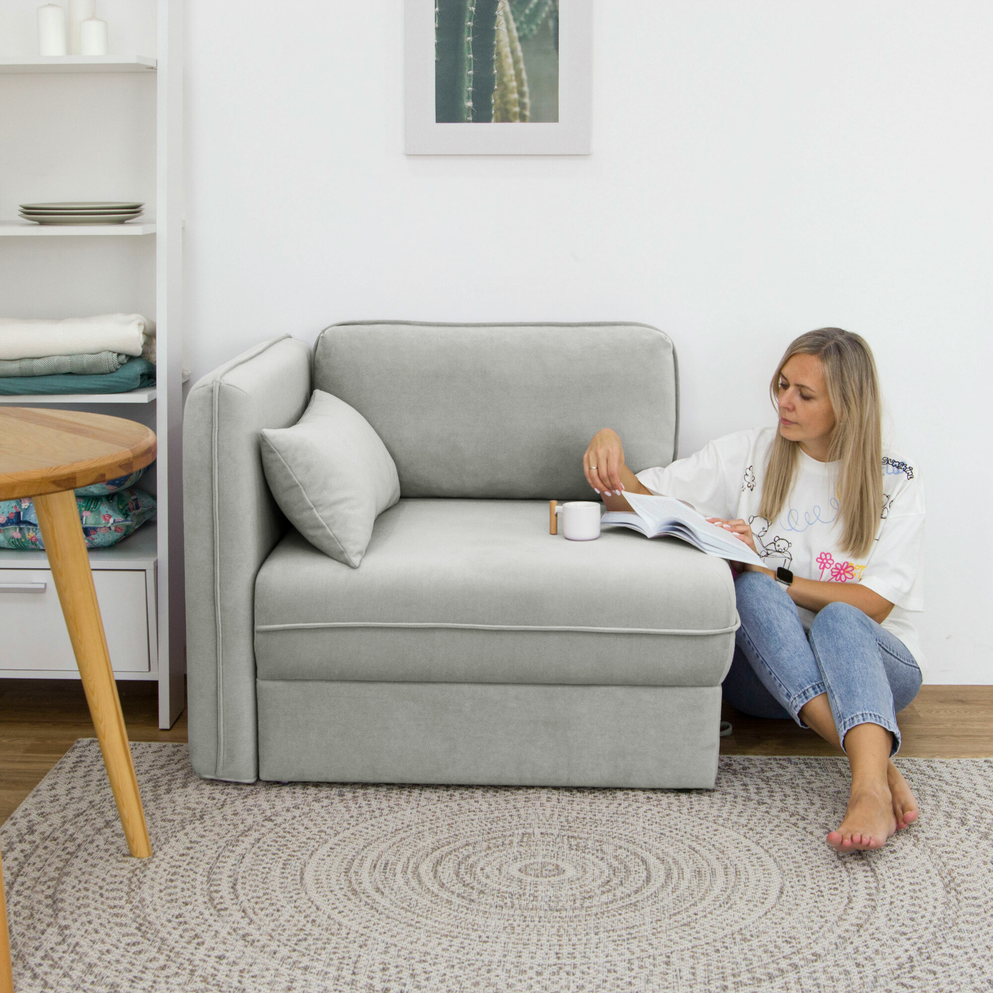 СохранитьДиван-кровать KRASDIVAN Олаф 80х100 см, с ящиком для белья, велюр Бахрия 11 светло-серый интересное: