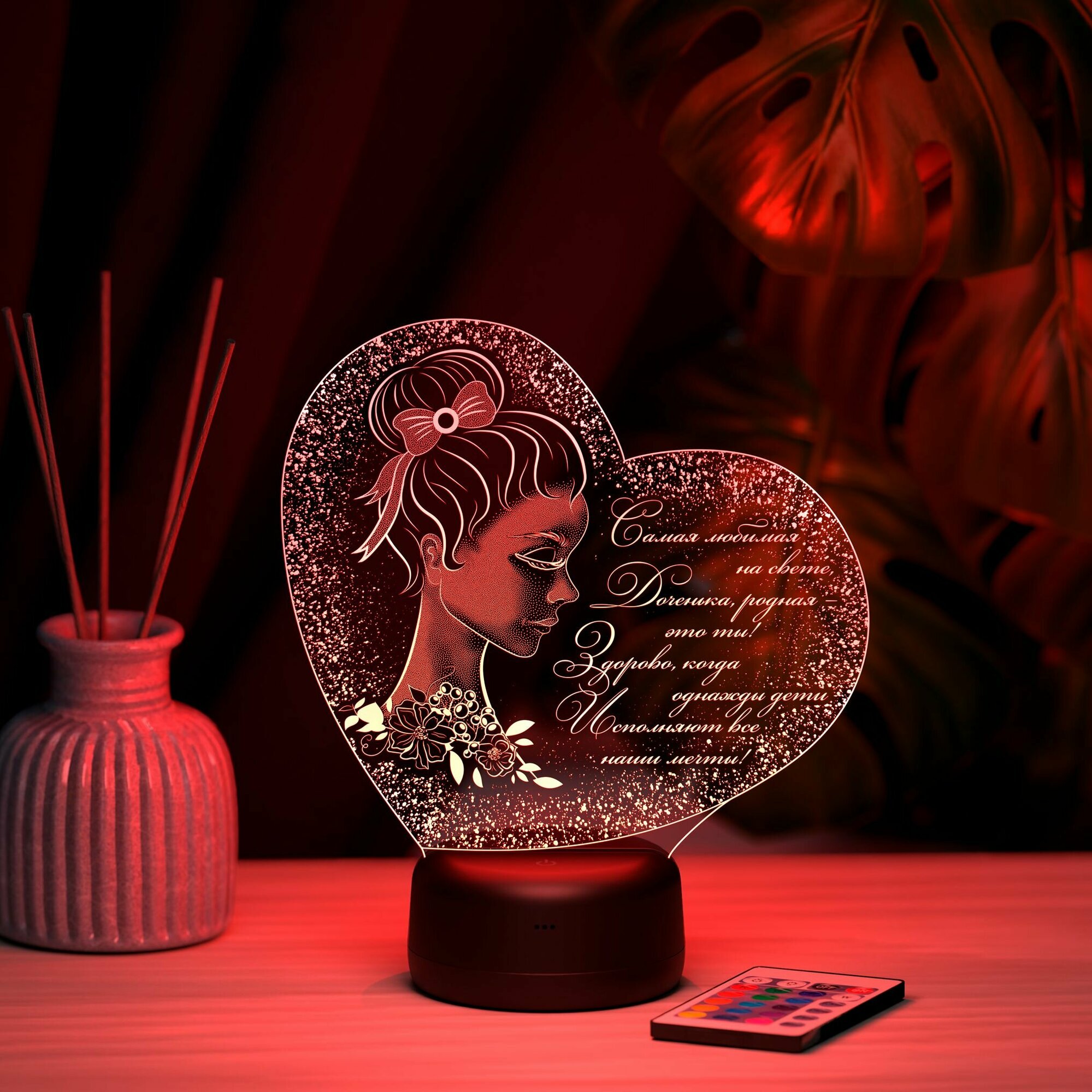 Ночник "Любимой доченьке с сердечками" - подарок близким
