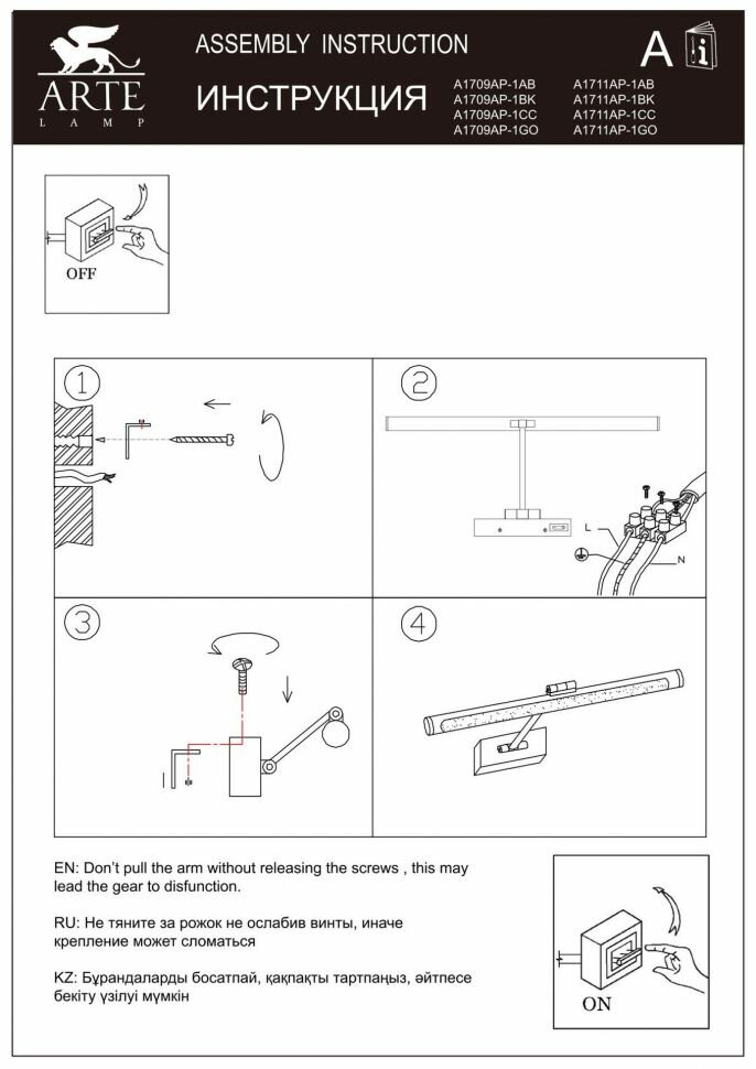 СохранитьПодсветка для картин Arte Lamp HARRISON A1711AP-1BK интересное: