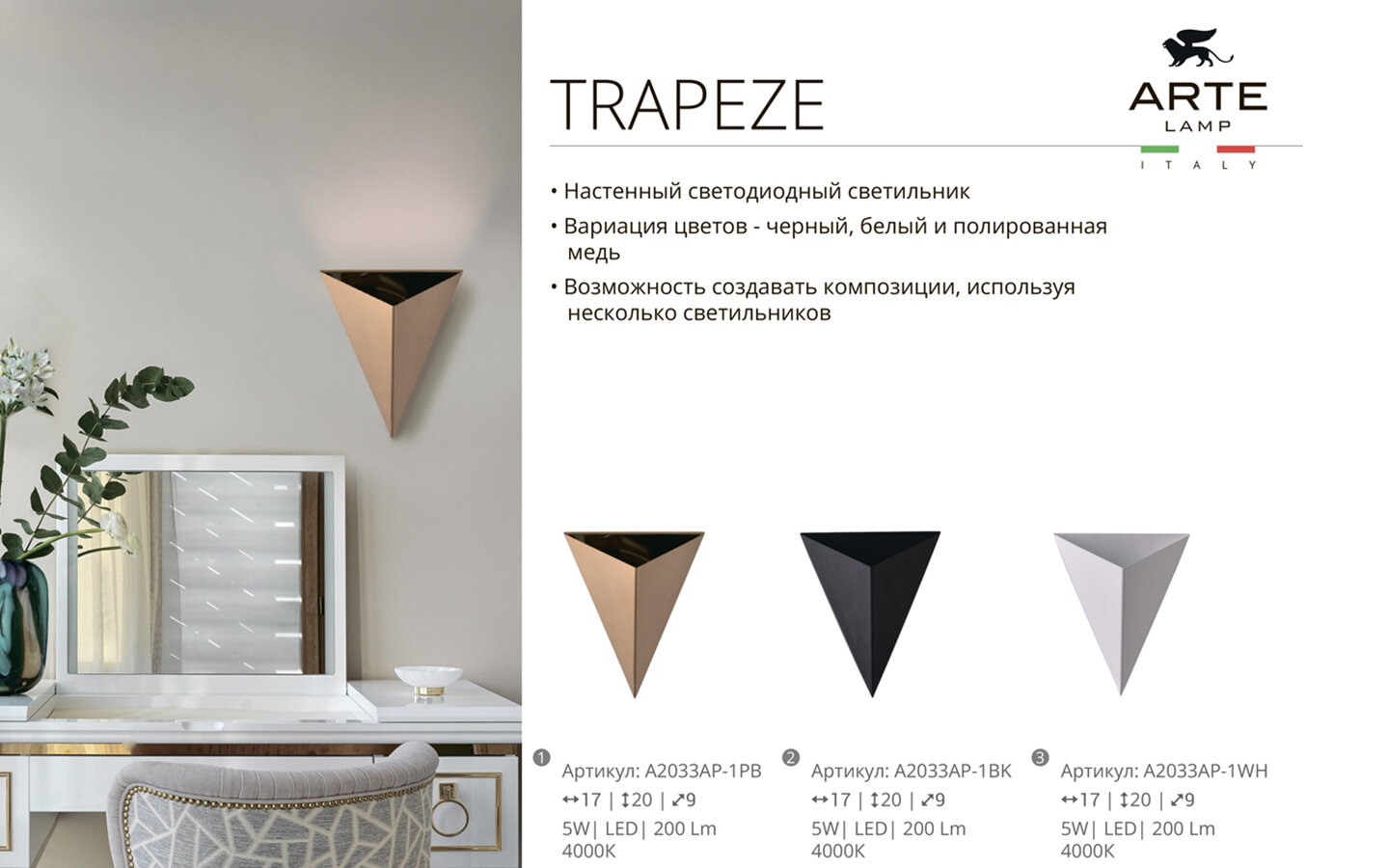 Декоративная подсветка Arte Lamp Trapeze A2033AP-1PB