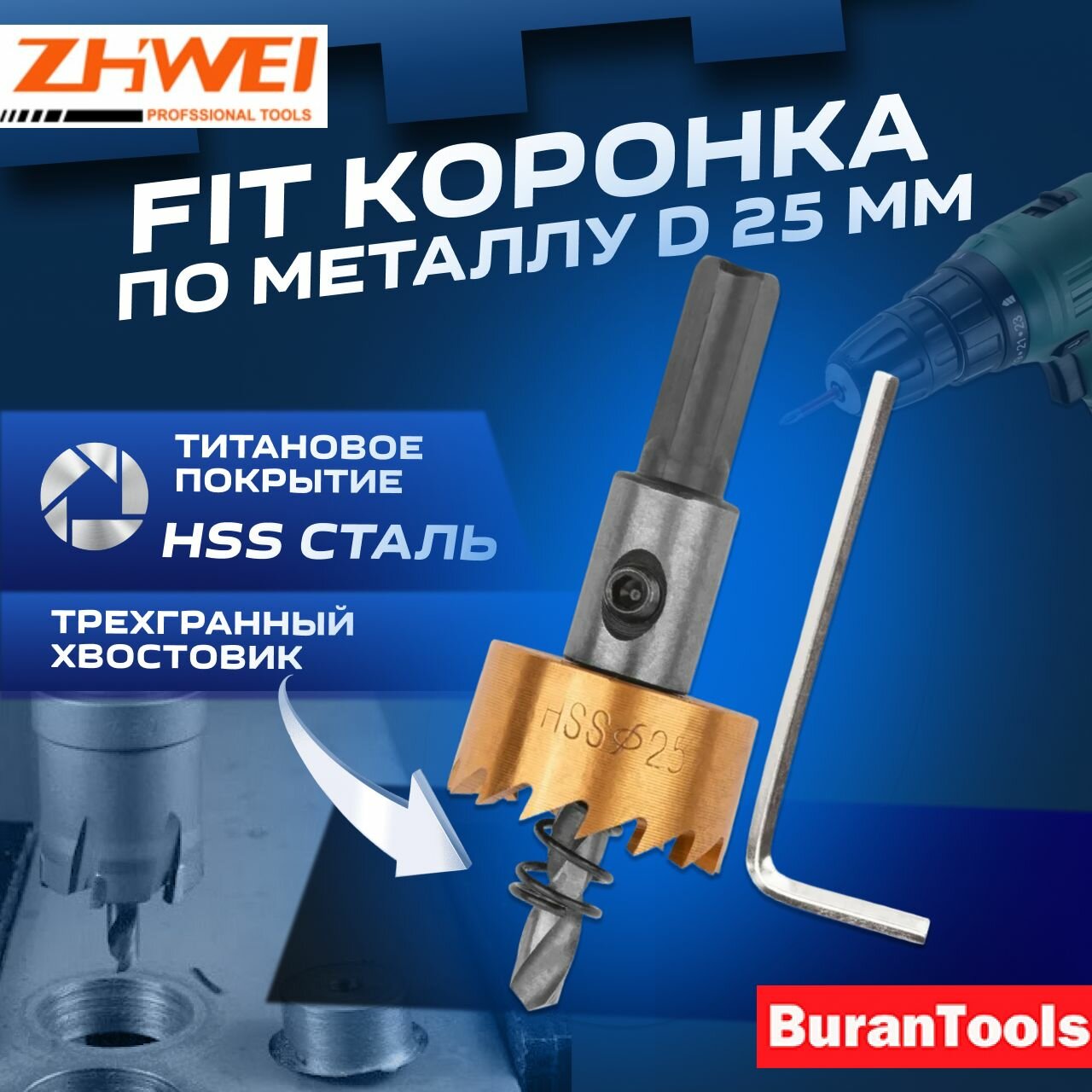 Коронка кольцевая по металлу 25мм HSS с титановым покрытием FIT