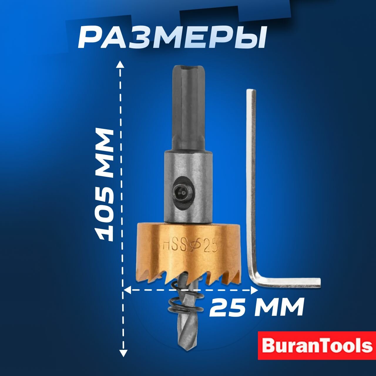Коронка кольцевая по металлу, HSS сталь, титановое покрытие 25 мм .
