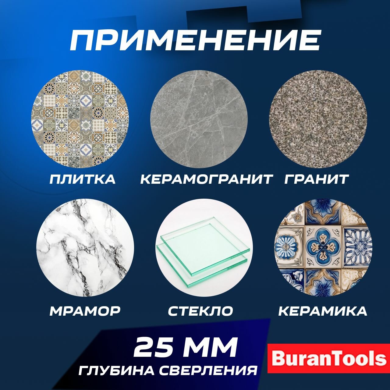 Коронка кольцевая по кафелю карбидная, глубина пропила 25 мм, 35 мм